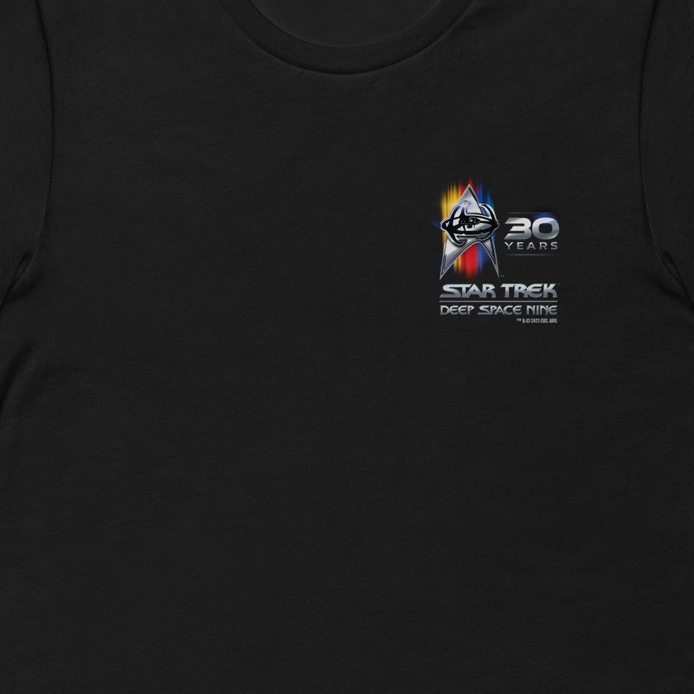 Since 1993, Star Trek: Deep Space Nine has been a favorite to all avid Star Trek fans. Celebrate the 30th Anniversary of the series with the Star Trek: Deep Space Nine 30th Anniversary Adult Short Sleeve T-Shirt! Defend the Bajoran Wormhole or just watch your favorite episode of the show in this soft and cozy tee.