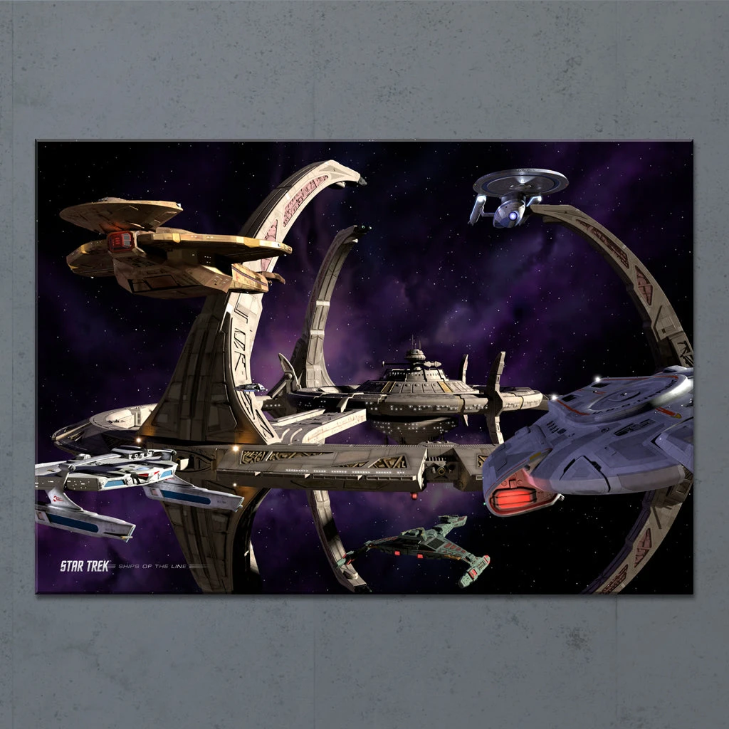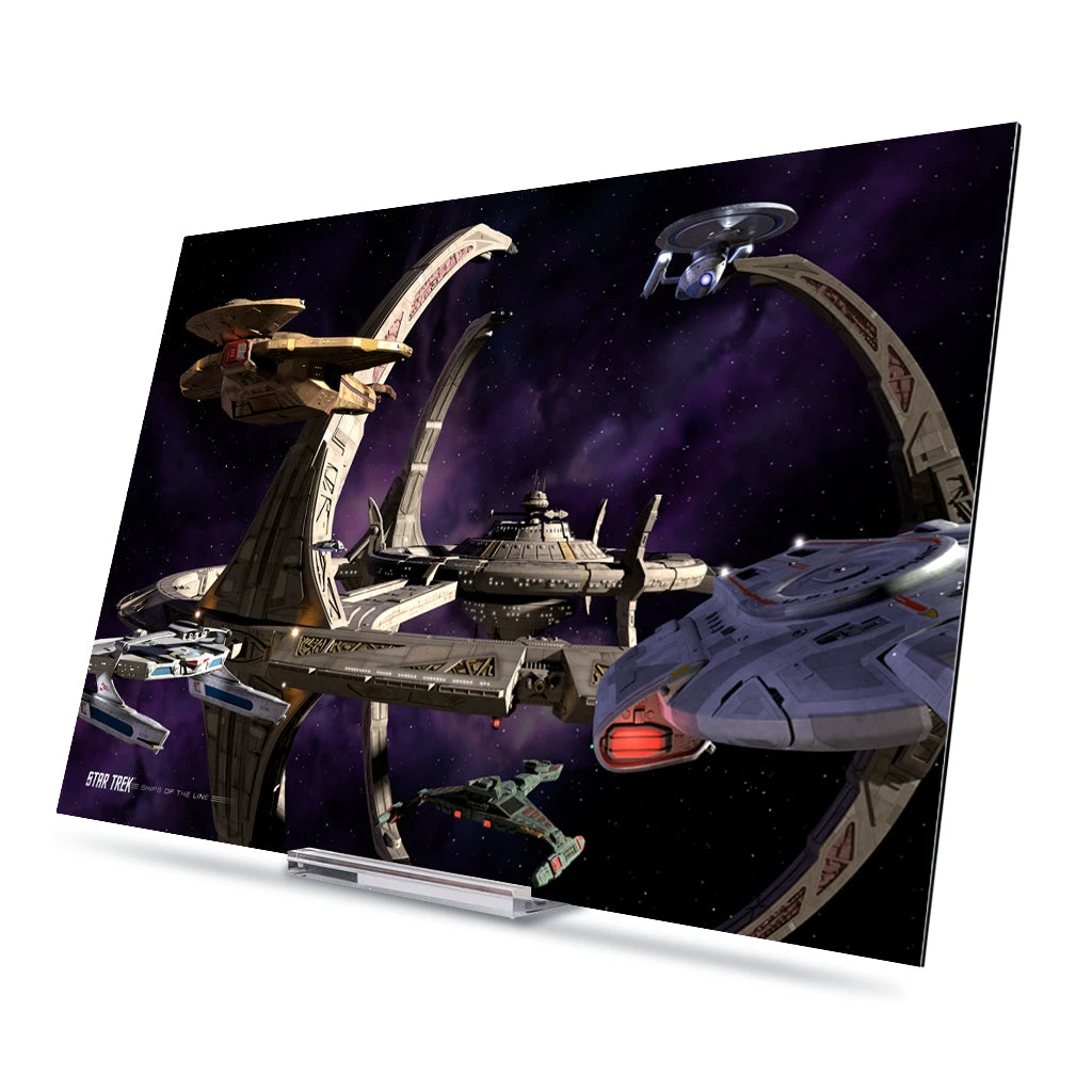 Celebrate the power, awe, and inspiration of Star Trek’s most iconic vessels with this Star Trek: Deep Space Nine Ships of the Line Wheel in the Sky wall art. Perfect for any Star Trek fan, this acryclic makes a great addition to any media room.