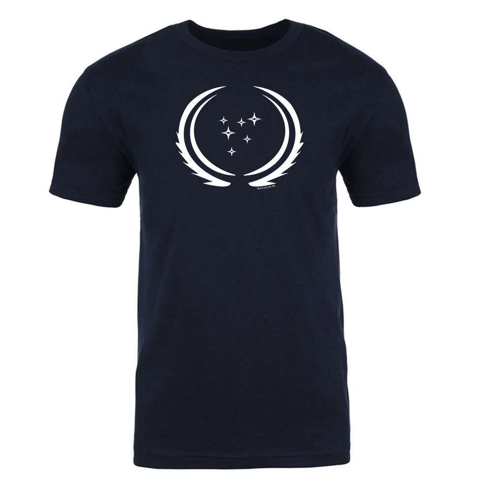 As seen in the trailer for Star Trek: Discovery Season 3, this Star Trek: Discovery 32nd Century United Federation of Planets Flag Adult Short Sleeve T-Shirt is the perfect way to get excited for the latest installment of Discovery. Featuring six stars against a black material, this comfy tee lets you represent the United Federation in style.