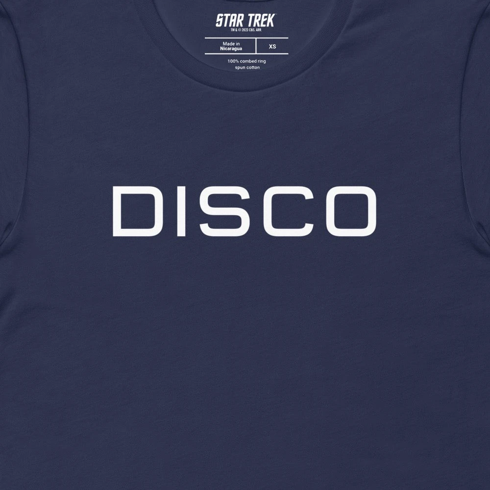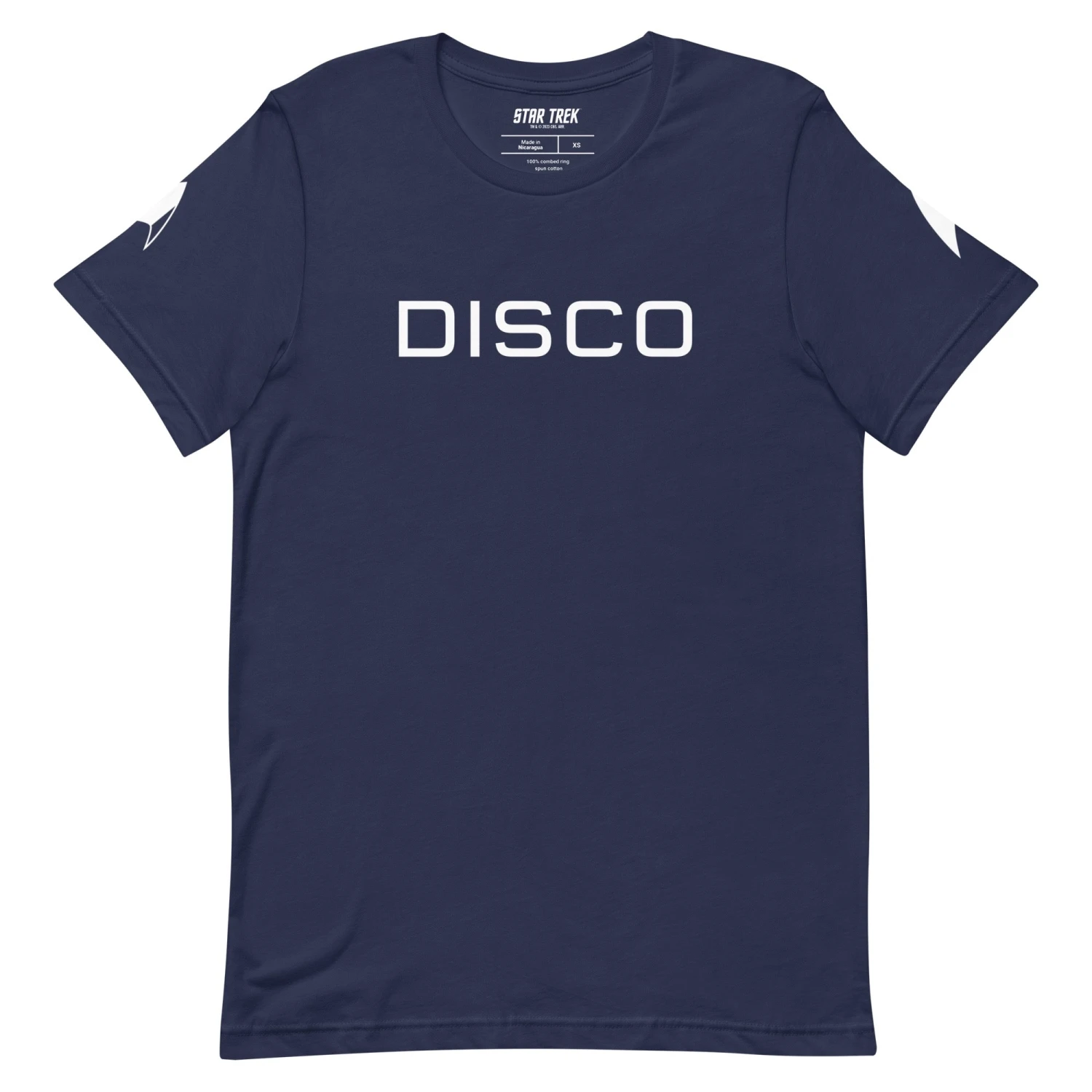 Gear up for your next work out with the Star Trek: Discovery Disco T-Shirt, as seen on the series. Features the Discovery delta on both sleeves and the word DISCO for the U.S.S. Discovery on the front.