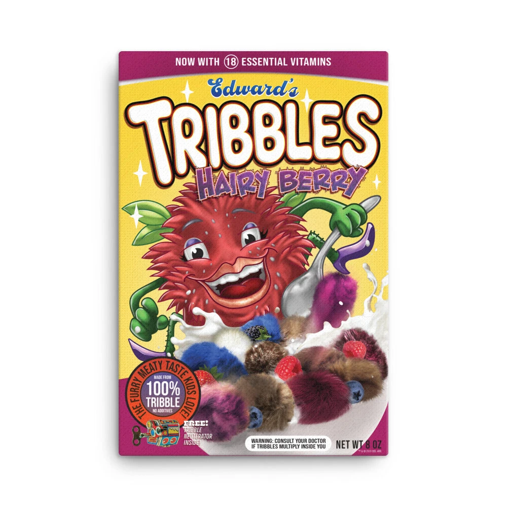 Who knew something so nutritious and delicious could be so cute? Packed with 18 essential vitamins and bursting with the meaty flavor that kids love, Hairy Berry Tribbles are sure to be a breakfast hit! Represent your favorite furballs in the galaxy by hanging this colorful Star Trek: Discovery Hairy Berry Tribbles Wrapped Canvas for all to see.