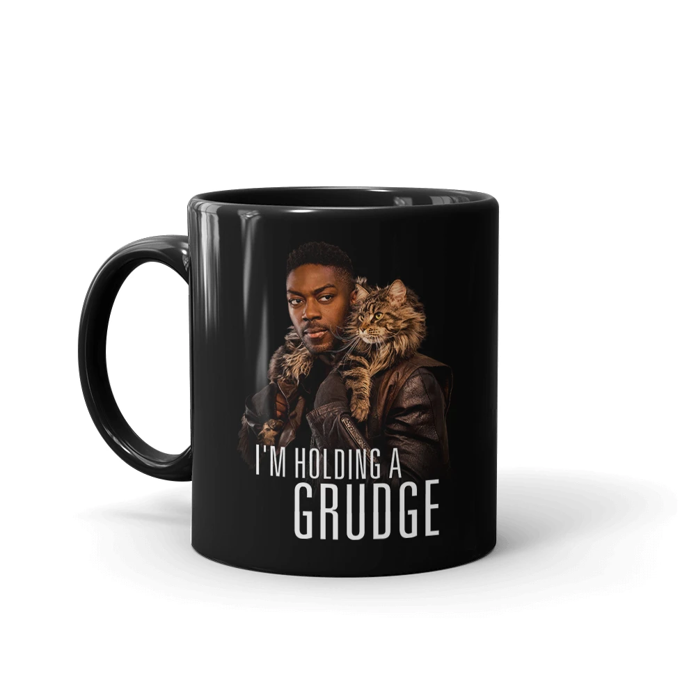 Is there anything better than starting your day with a Grudge? Featuring Grudge the cat on Booker’s shoulders, this Star Trek: Discovery Holding A Grudge Black Mug is an adorable way to enjoy your morning coffee or evening tea.