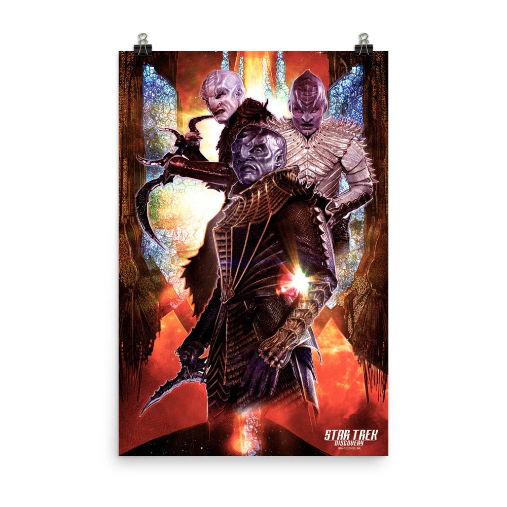 Represent your appreciation for your favorite empire in the galaxy by hanging this Star Trek: Discovery Klingon Collage Poster in the room of your choice. Featuring a bold design that boasts a trio of Klingons, this collage poster looks stunning framed or hung on its own.
