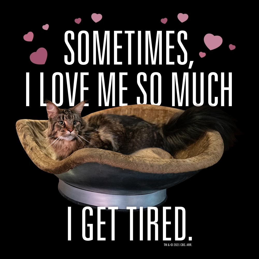If you tire yourself over how much you love yourself, then this Star Trek: Discovery Love Grudge Adult Short Sleeve T-Shirt belongs in your wardrobe. Featuring a lounging Grudge the cat, this comfy short-sleeve tee is perfect to wear during Valentine’s Day and beyond.