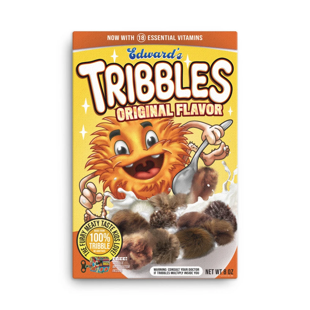 Discover the deliciousness of the galaxy’s favorite furballs with this Star Trek: Discovery Original Flavor Tribbles Wrapped Canvas! Featuring an Original Flavor Tribble front and center, this colorful cereal-inspired design will make any fan of Star Trek: Discovery smile.