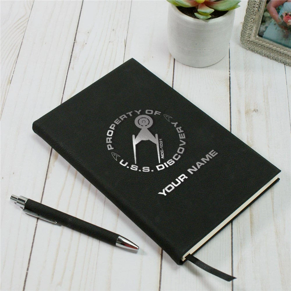 Saving the universe takes a lot of planning, prepare your plan in the Star Trek: Discovery Property of U.S.S. Discovery Ship Personalized Leather Journal. Add your name to the journal for a personalized touch, and so everyone will know to keep their hands off!