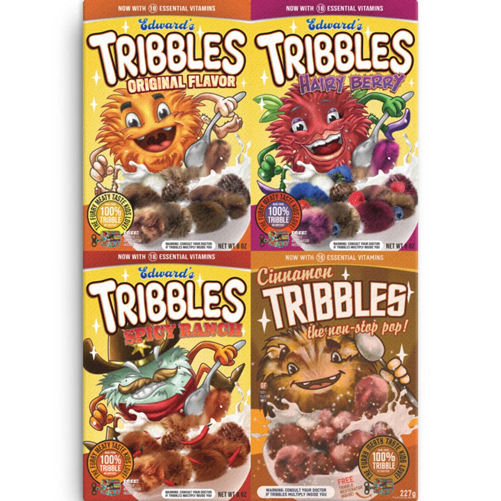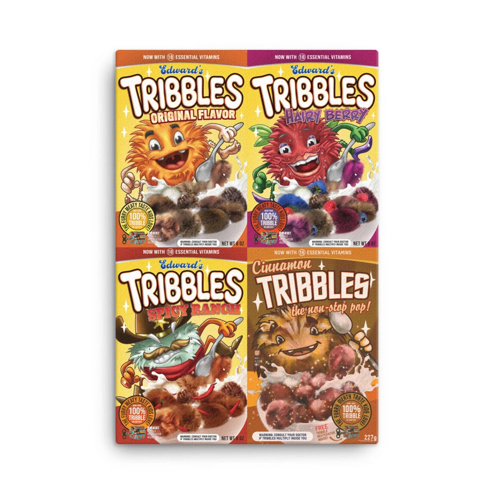 They’re pregnant…with flavor! Whether you love a specific flavor or adore all three equally, this colorful Star Trek: Discovery Tribbles Box Collage Wrapped Canvas lets you show the galaxy that you are the #1 fan of this nutritious breakfast. Gift this canvas to yourself or a fellow Star Trek fan to celebrate the universe’s favorite furballs.
