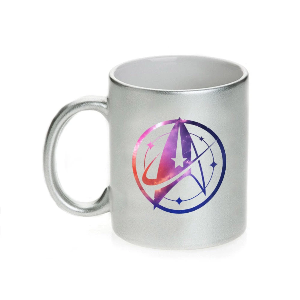 No one wants to save the universe without their morning coffee! This Star Trek: Discovery Universe Logo Silver Metallic 11 oz Mug will solve that problem!
