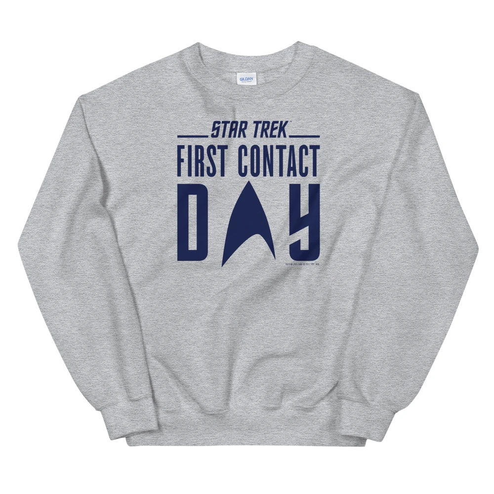 Featuring a sleek nebula logo, this Star Trek: First Contact Blue Logo Fleece Crewneck Sweatshirt lets you celebrate the anniversary of First Contact Day in style. With a comfortable, form-fitting style and eye-catching design, this tee is the perfect addition to your space traveling look.