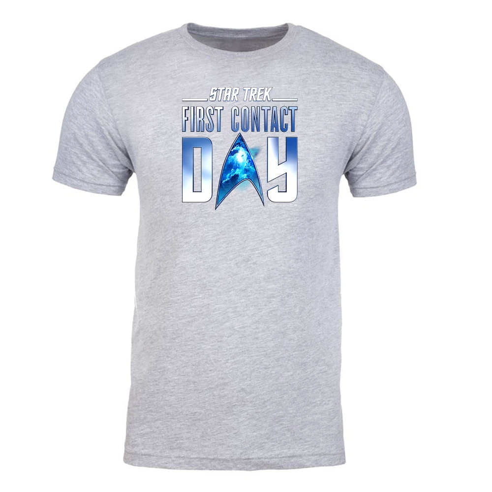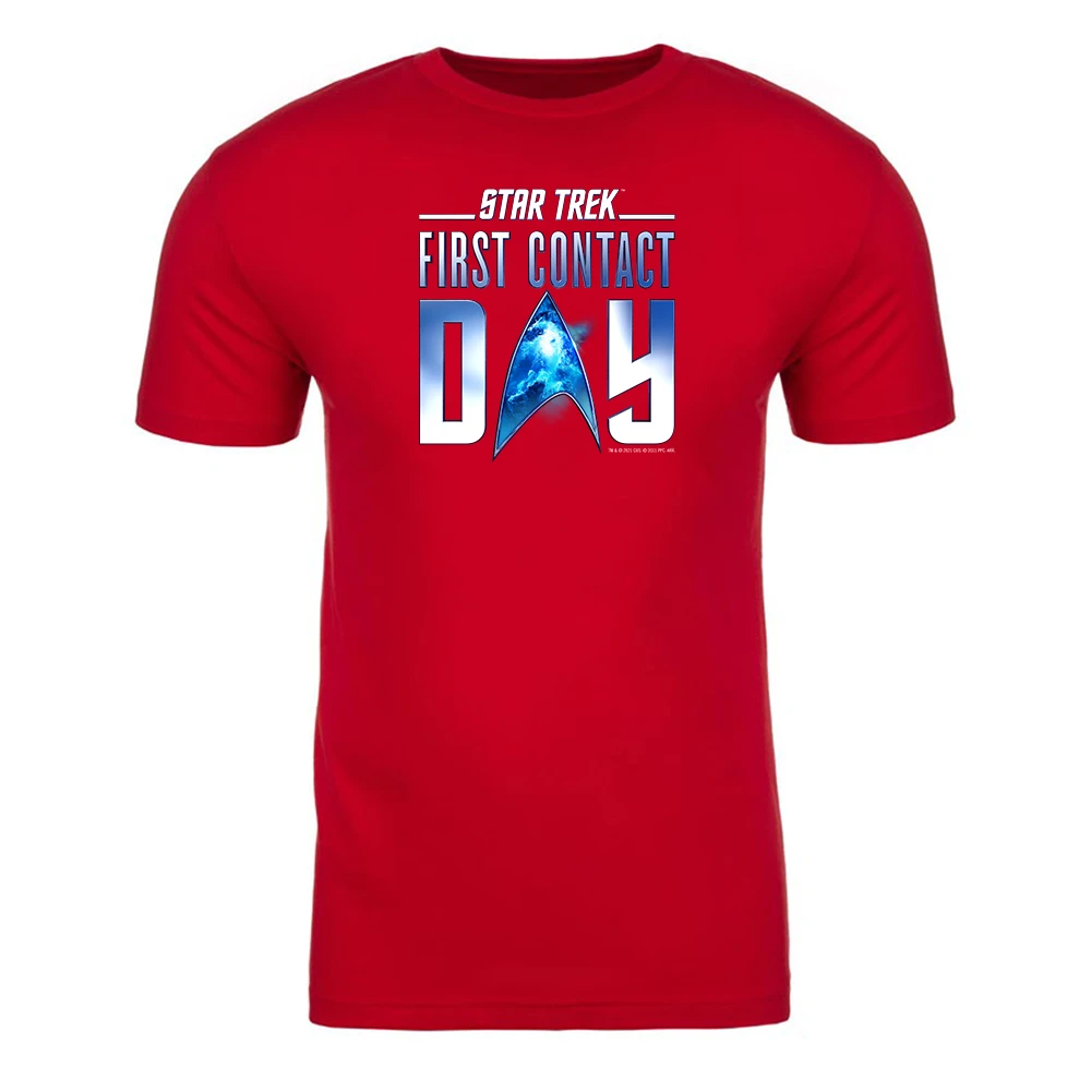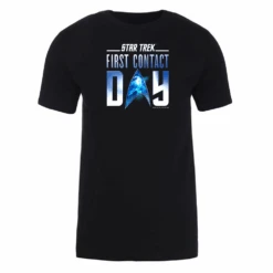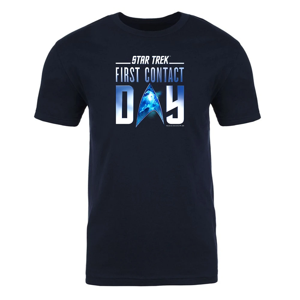 Celebrate the first contact between Vulcans and humans this First Contact Day in ultimate style with this Star Trek: First Contact Day Nebula Logo Adult Short Sleeve T-Shirt. Featuring an eye-catching nebula design, this comfortable Star Trek t-shirt will simply eclipse all of your other shirts.