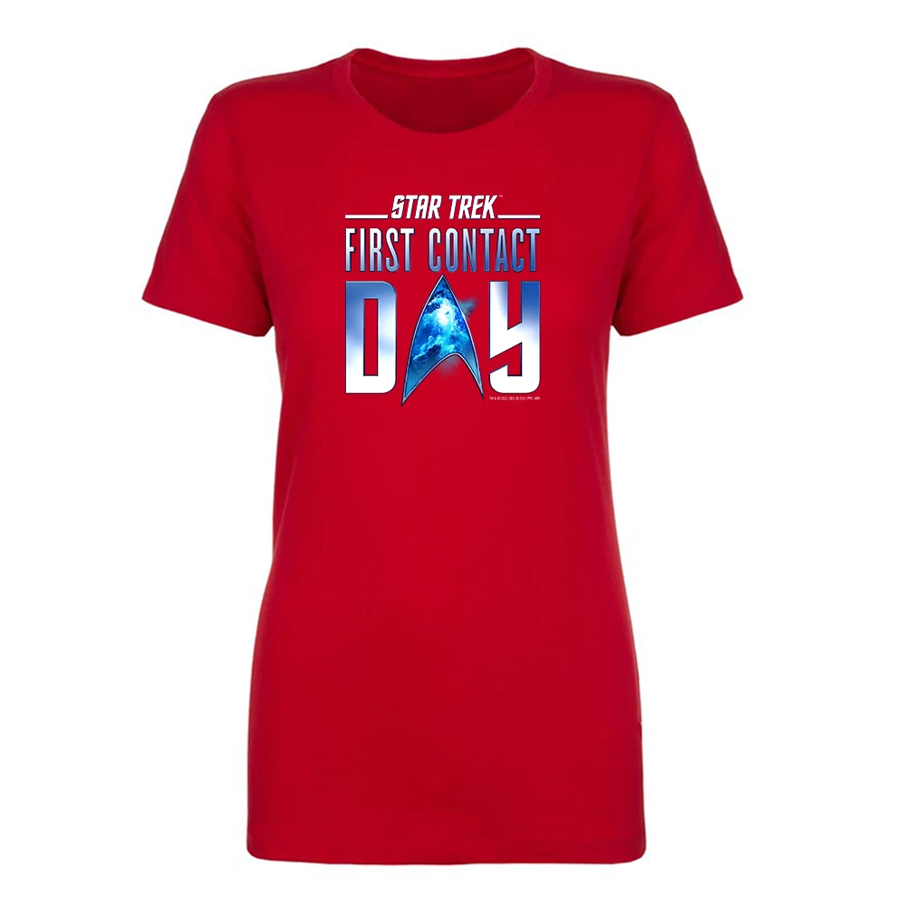 Featuring a sleek nebula logo, this Star Trek: First Contact Day Nebula Logo Women’s Short Sleeve T-Shirt lets you celebrate the anniversary of First Contact Day in style. With a comfortable, form-fitting style and eye-catching design, this tee is the perfect addition to your space traveling look.
