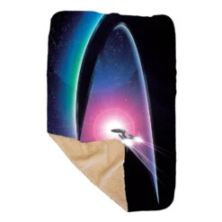 From the depths of space to your comfy couch, you will love wrapping yourself in this ultra-cozy Star Trek: Generations Delta Sherpa Blanket! Featuring the Starfleet Delta within a colorful nebula, this sherpa blanket will quickly become a Star Trek binge-a-thon necessity.