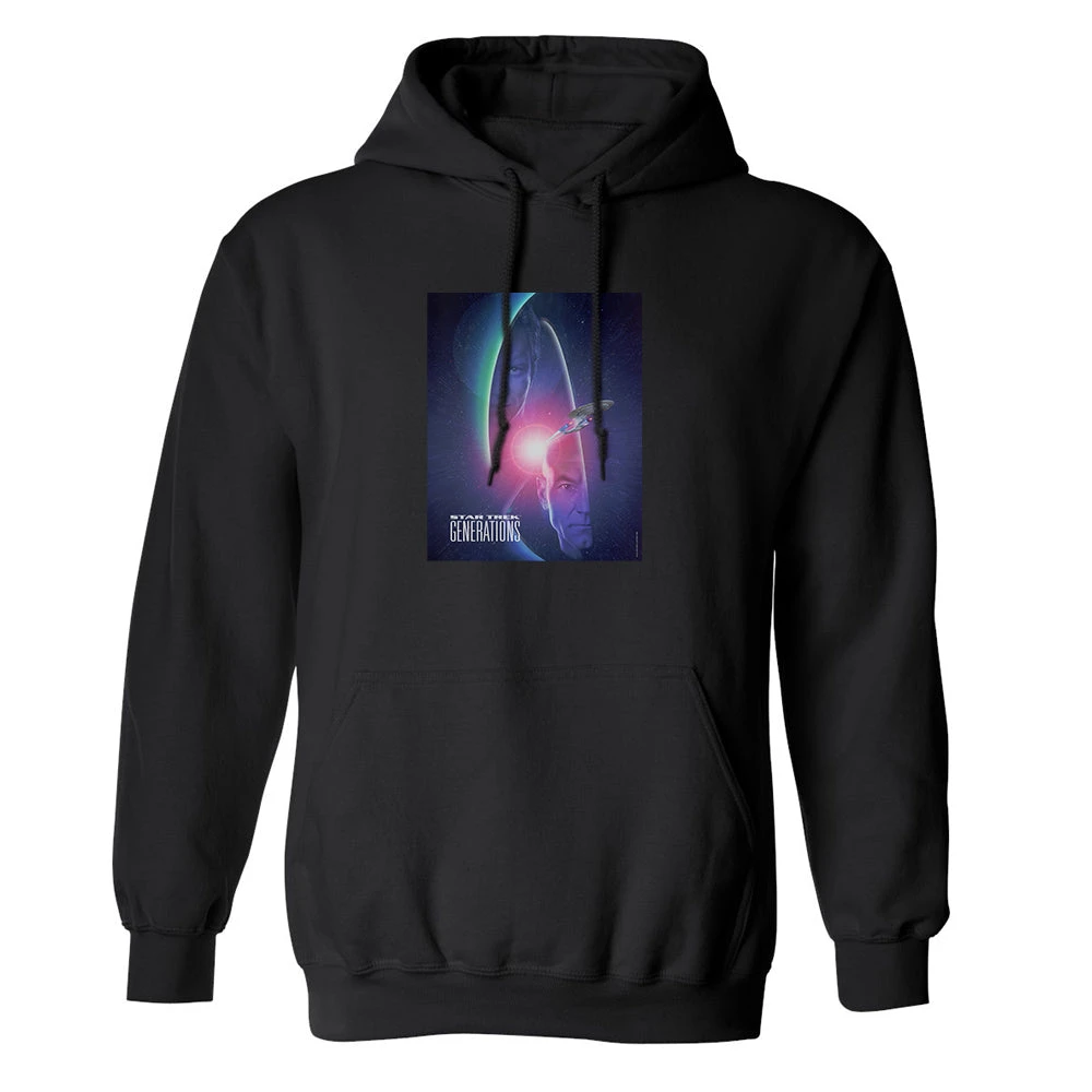 From exploring the depths of the universe to simply strolling around town, this Star Trek: Generations Kirk & Picard Logo Fleece Hooded Sweatshirt will keep you nice and toasty everywhere you go. Made of ultra-warm fleece materials and featuring an out-of-this-world design, this hooded sweatshirt is the perfect look for chilly days.