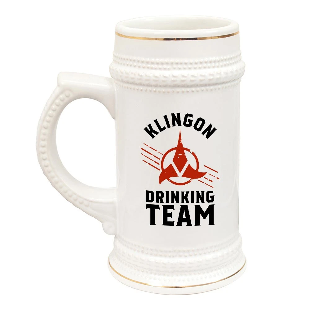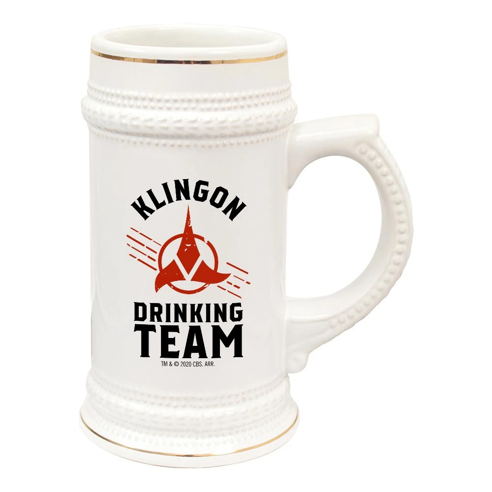 Show off your status as an official member of the Klingon Drinking team by adding this Star Trek Klingon Drinking Team Beer Stein to your Star Trek collection. Sturdy, sleek, and perfect for beer and Star Trek enthusiasts, this beer stain makes a great gift for yourself or a fellow fan.
