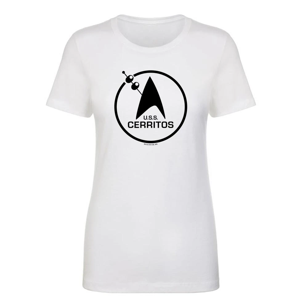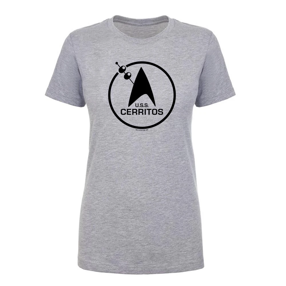 Join Mariner, Boimler, Rutherford and Tendi for a relaxing evening at the Cerritos Bar in style by adding this Star Trek: Lower Decks Cerritos Bar Logo Women’s Short Sleeve T-Shirt to your wardrobe. Whether you love a classic martini or something mixed, this tee lets you represent your favorite bar in style.