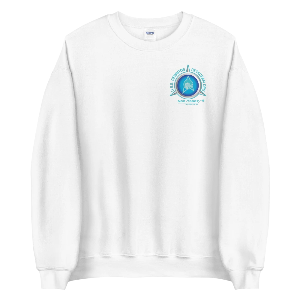 This Star Trek: Lower Decks Cetacean Ops Delta Small Logo Crewneck Sweashirt is the perfect addition to the wardrobe of any fan. Featuring a comfortable fit and the U.S.S Cerritos Cetacean Ops logo front and center, this sweatshirt gives a subtle, stylish nod to your favorite series in the Star Trek franchise.