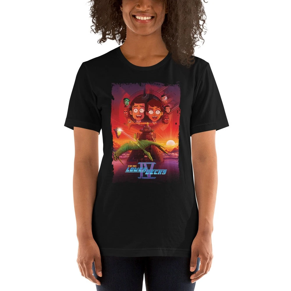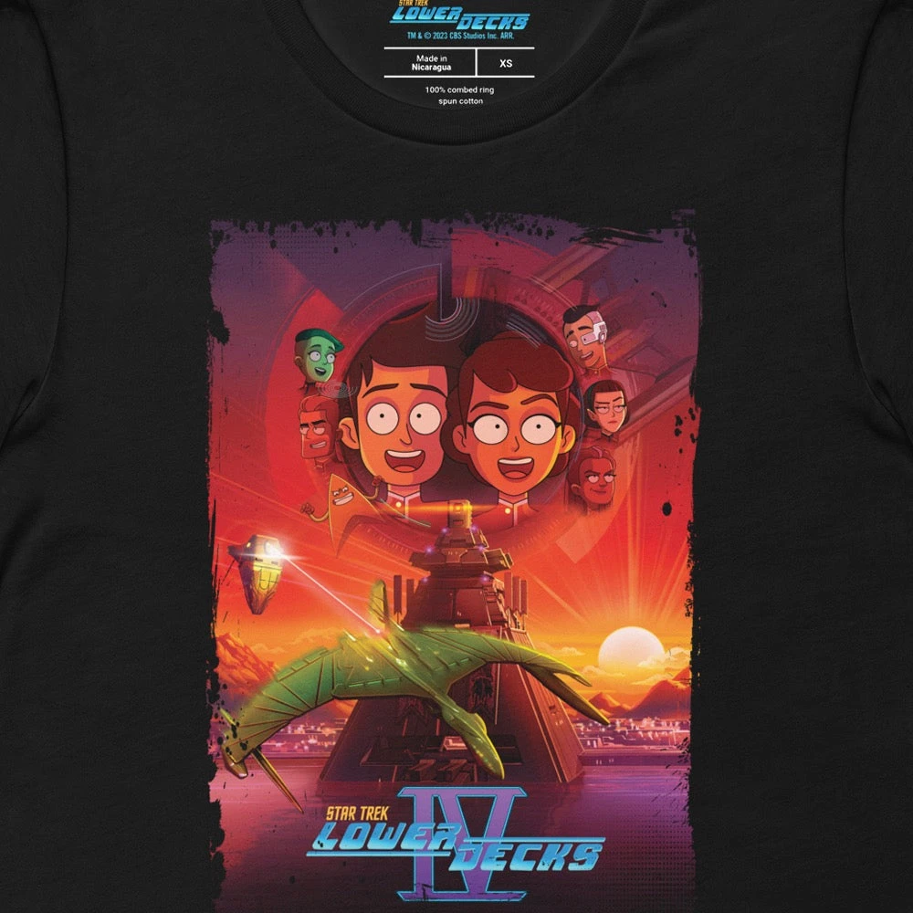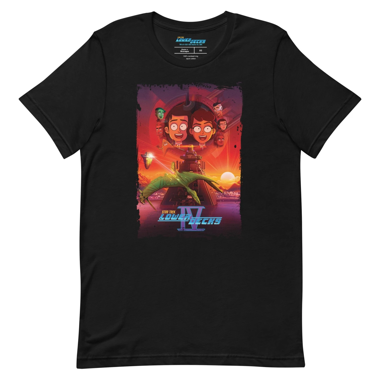 Show your love for Star Trek Lower Decks Season 4 with this stylish unisex T-shirt. Featuring a unique design celebrating the series, this T-shirt is perfect for fans who appreciate the comedic side of space exploration.