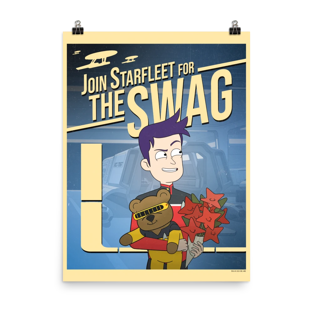 Everyone knows that the best part of joining Starfleet is the swag! A great collector’s item, this Star Trek: Lower Decks Swag Recruiting Premium Satin Poster featuring Ensign Boimler makes a great addition to your home or work space.