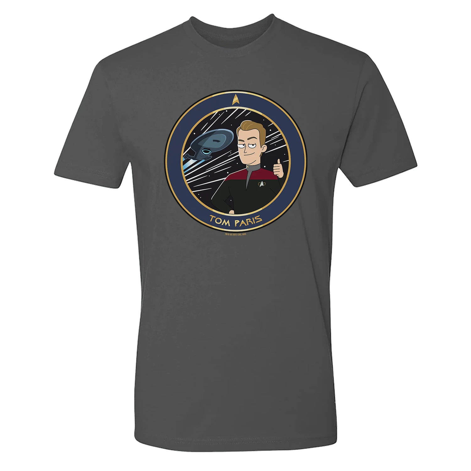 Show off how much you admire Tom Paris by wearing this comfortable Star Trek: Lower Decks Tom Paris Plate Adult Short Sleeve T-Shirt throughout the galaxy. With Tom Paris front and center, this Star Trek: Lower Decks t-shirt is a staple addition to any fan’s wardrobe.
