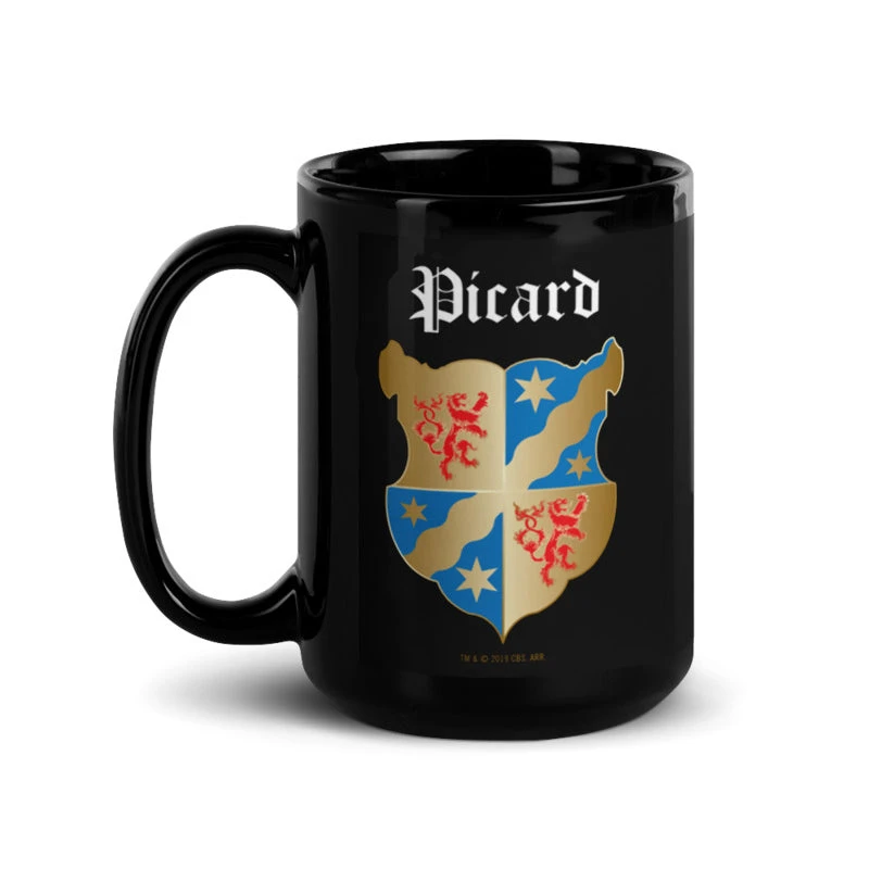 When it comes to family, loyalty runs forever. Show your pride for Captain Picard each time you sip hot coffee or tea out of this Star Trek: Picard Coat of Arms Picard Family Forever 15 oz Black Mug.