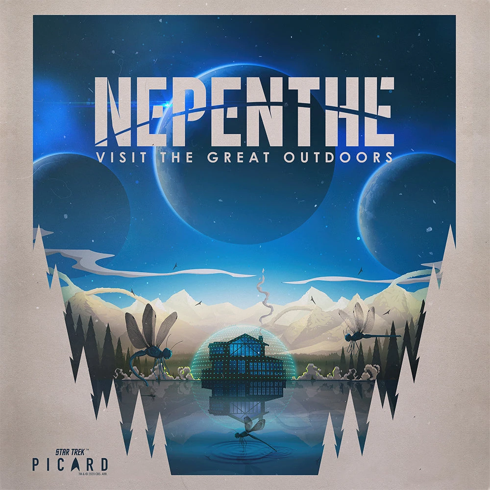 Are you itching for the great outdoors? Or perhaps some delicious homemade pizza? Then you will love visiting the serene Nepenthe. Featuring Captain Riker’s home nestled within the pristine pines and waters of Nepenthe, this Star Trek: Picard Nepenthe Great Outdoors Premium Satin Poster is a beautiful addition to any home.