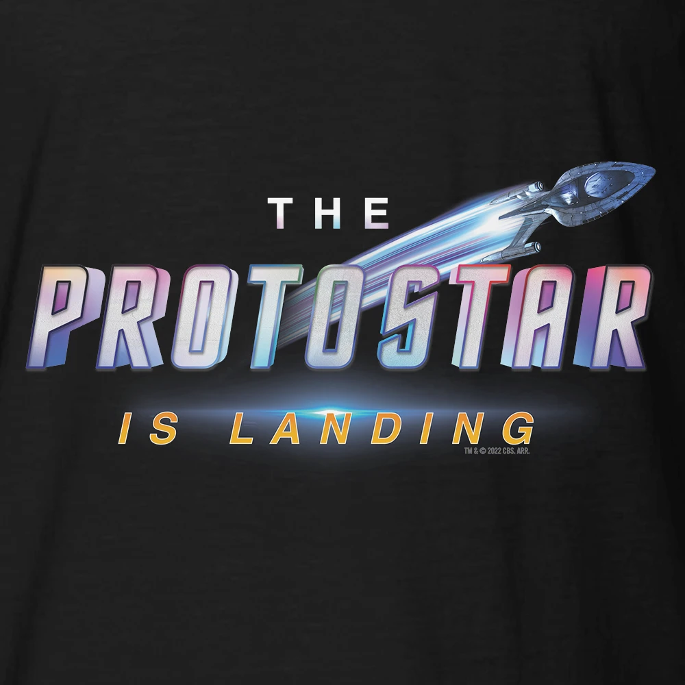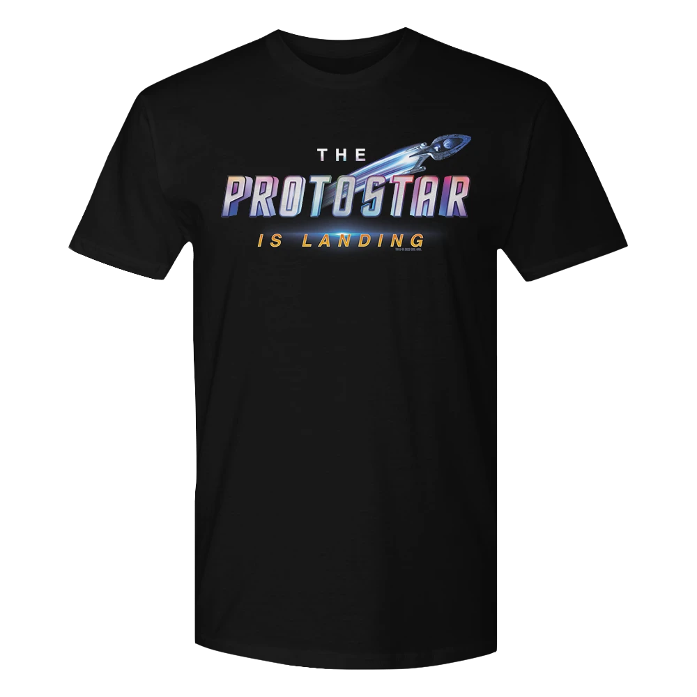 Full thrusters! Celebrate Star Trek Month with the new Star Trek: Prodigy The Protostar Is Landing Adult Short Sleeve T-Shirt. Comfy and featuring the Starship Protostar, this t-shirt is perfect for any Star Trek fan!
