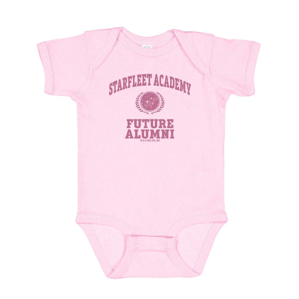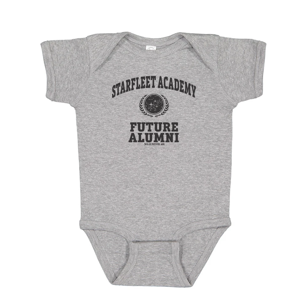Any future alumni of Starfleet Academy will love this new Star Trek Starfleet Academy Future Alumni Baby Bodysuit. Available in light blue, pink and grey this is the perfect first of many gifts for future Starfleet cadets!
