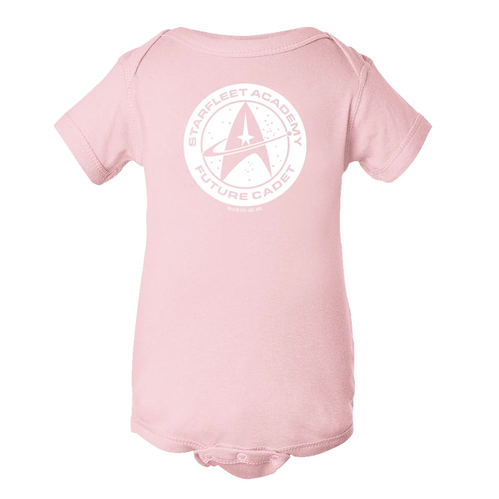 Comfortable and adorable, this Star Trek Starfleet Academy Future Cadet Baby Bodysuit will easily eclipse all of the other outfits in your baby’s wardrobe! Perfect for the littlest Star Trek fans, this bodysuit lets the universe know that you have a future cadet in your family.