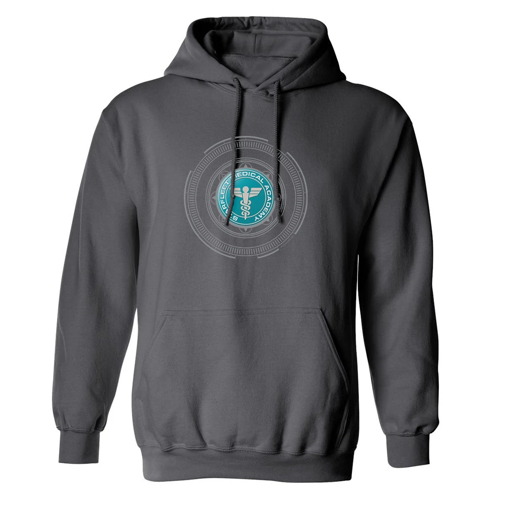 Stay warm while representing the medical expertise learned from Starfleet Academy with this Star Trek Starfleet Medical Badge Hooded Sweatshirt. Or, gift it to the health professional and Star Trek fan in your life!