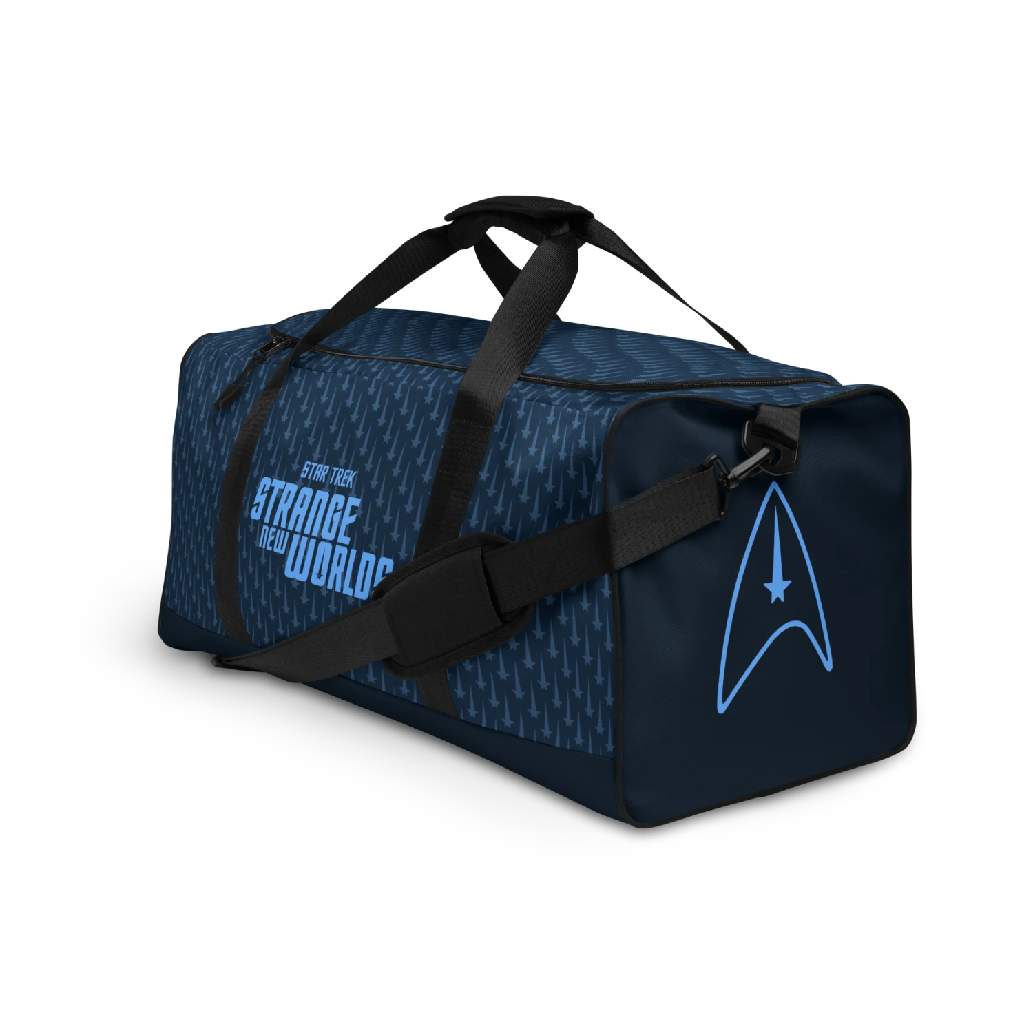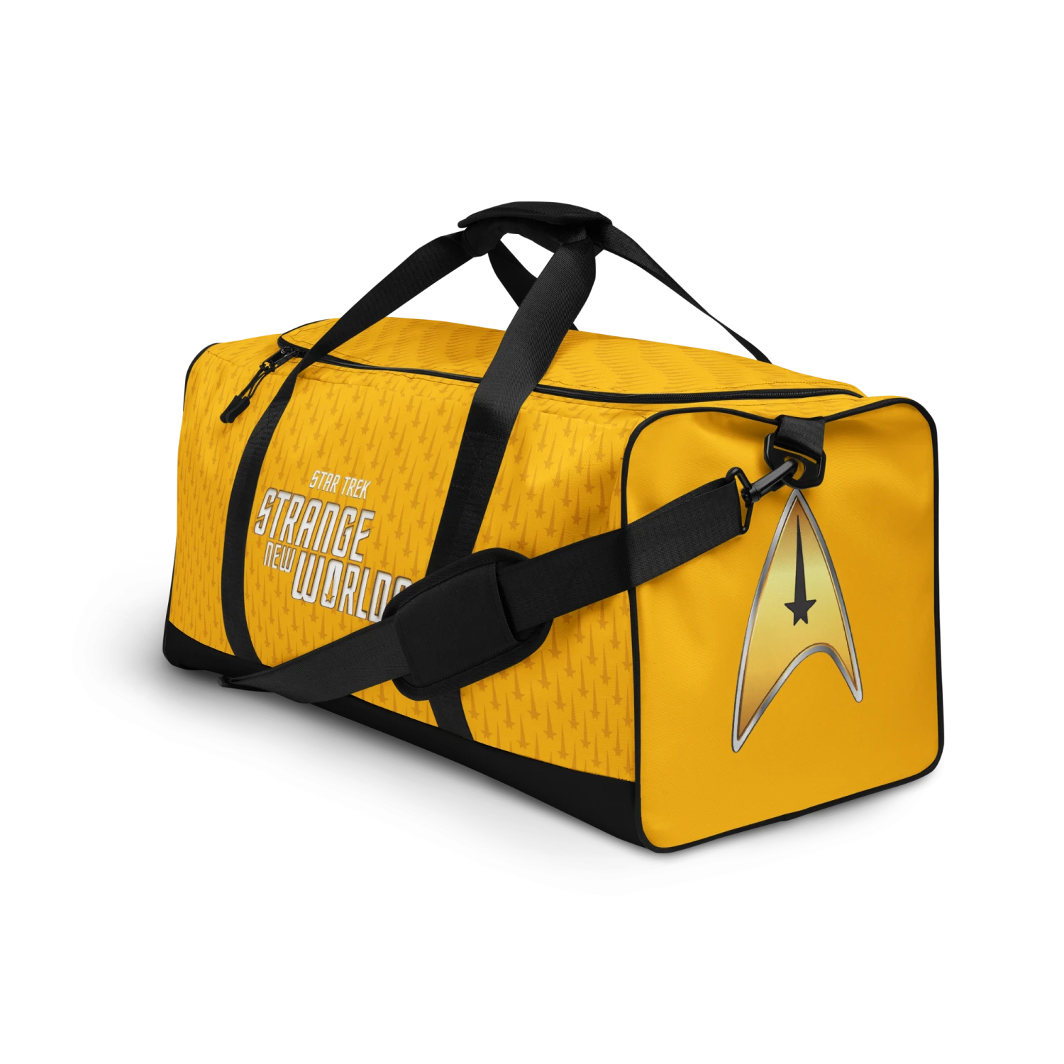 Set off for the final frontier with a Star Trek: Strange New Worlds Command Uniform Duffle Bag in hand! Printed with a repeating Commander insignia design on the side, this spacious carry-on comes with an over-the-shoulder strap for easy travel.