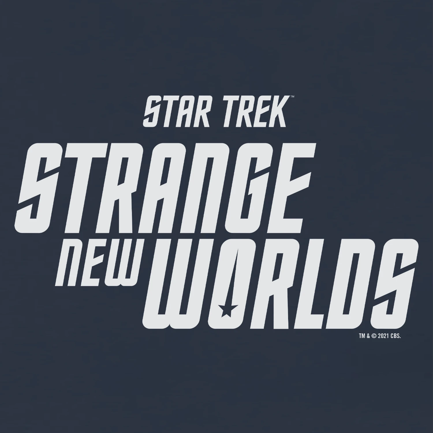 This Star Trek: Strange New Worlds Logo Adult Short Sleeve T-Shirt lets you explore the galaxy in ultimate style. With the Strange New Worlds logo across the chest, this comfortable Star Trek t-shirt is an outfit staple for any fan.