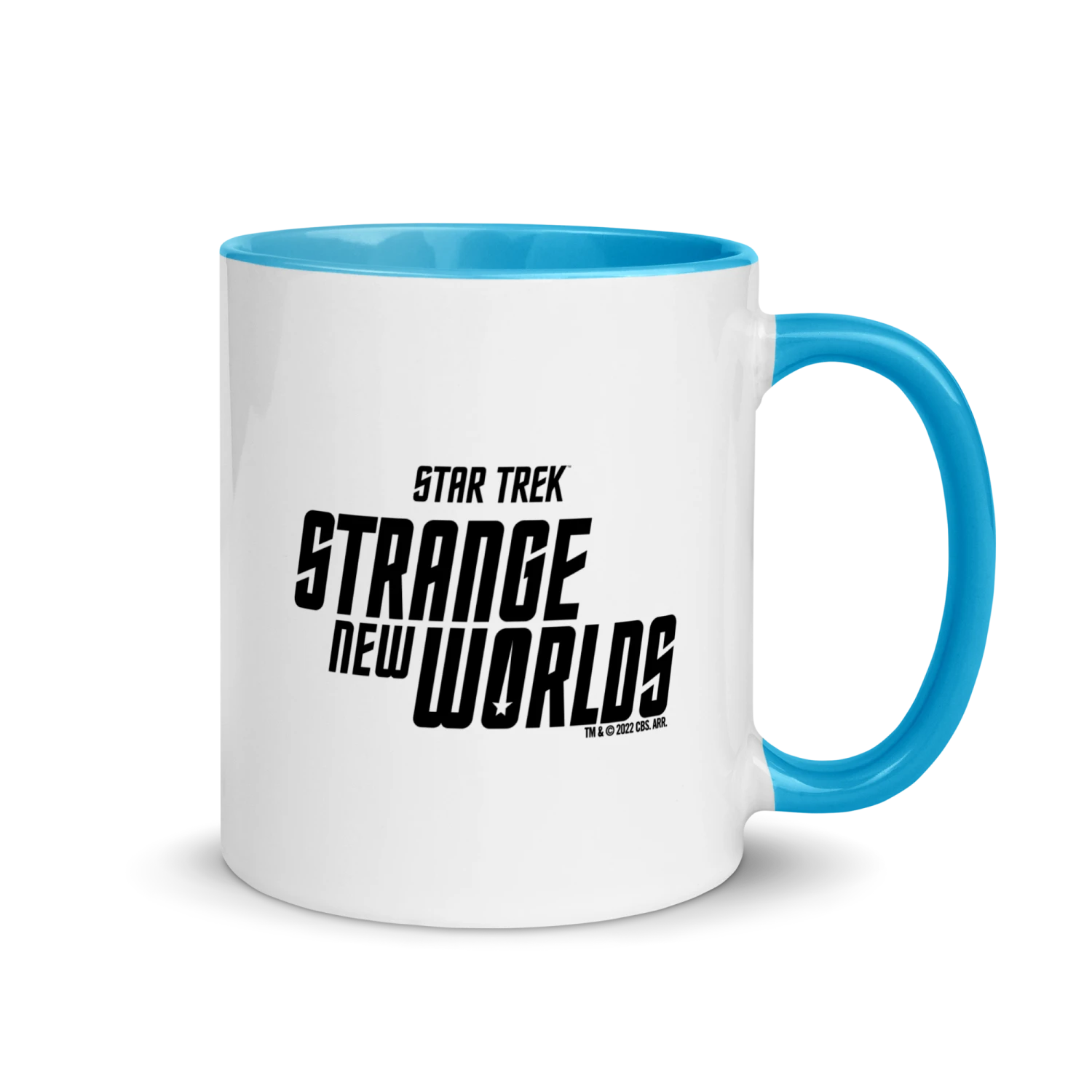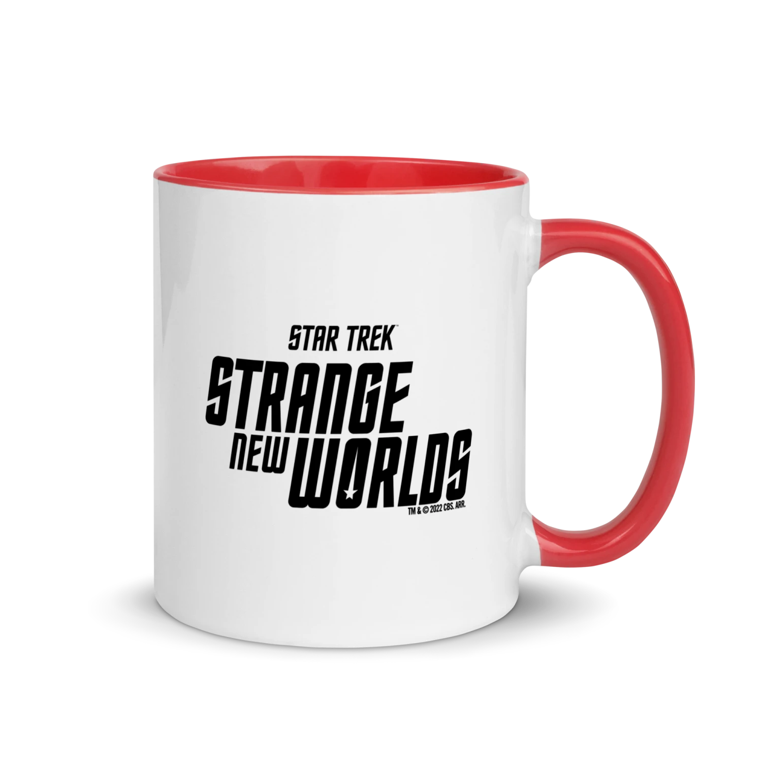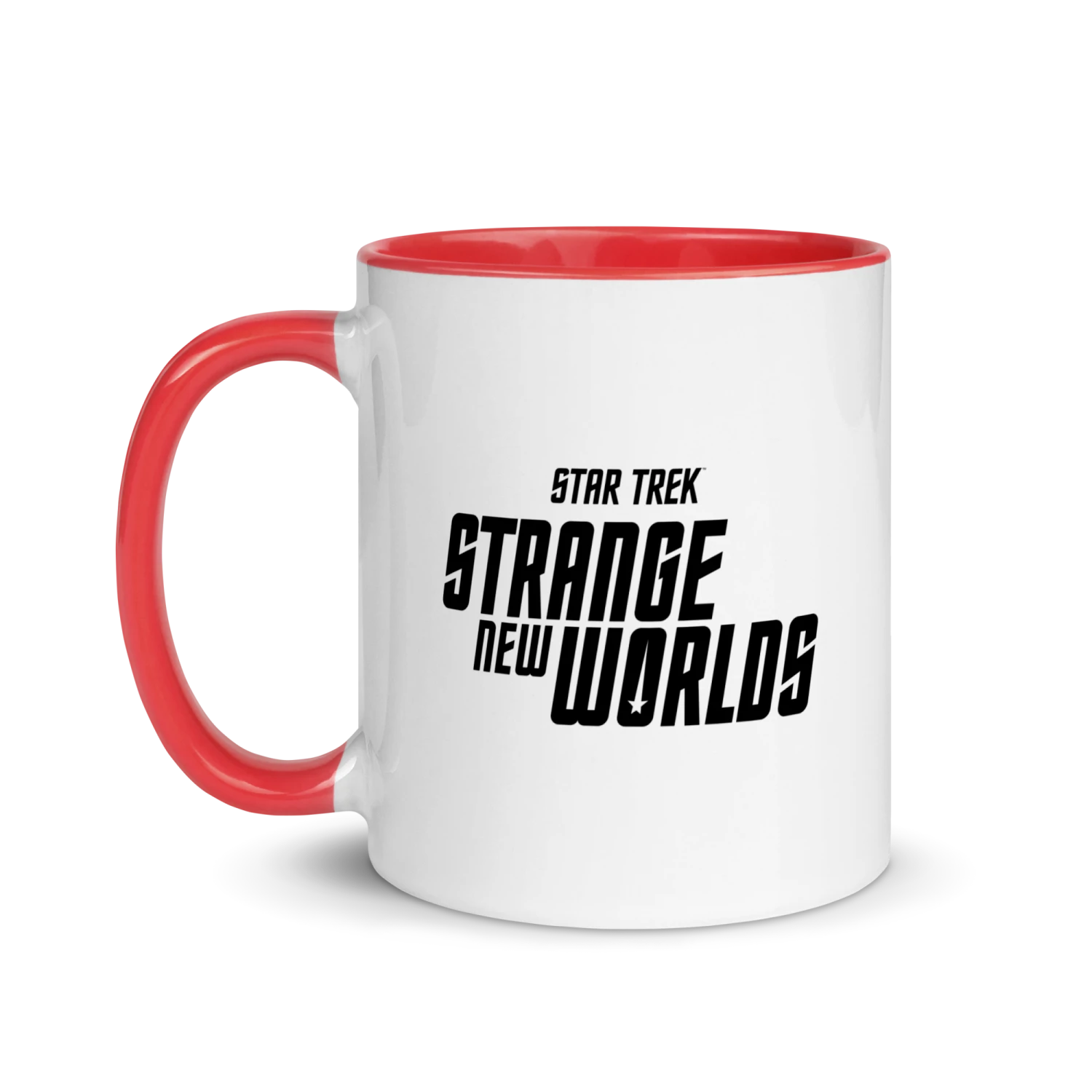 Enjoy your favorite beverage with a Star Trek: Strange New Worlds Logo Two-Tone Mug. Available in black, red and light blue handles, this drinkware item will make a colorful addition to your kitchen cabinet.
