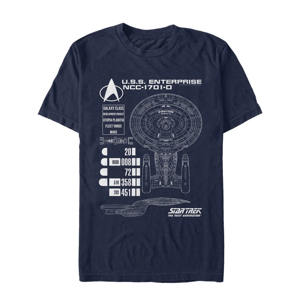 Help the crew of the U.S.S. Enterprise-D convince the god-like alien, Q, of humanity’s worth by showing him an awesome Star Trek: The Next Generation style! Your favorite crew members like Captain Jean-Luc Picard, Riker, Geordi La Forge, Worf, Deanna Troi, and Data are always there to make you laugh, cry, or feel excited about exploring the unknown with this official Star Trek: The Next Generation Enterprise Chart Graphic T-Shirt. Make it so!