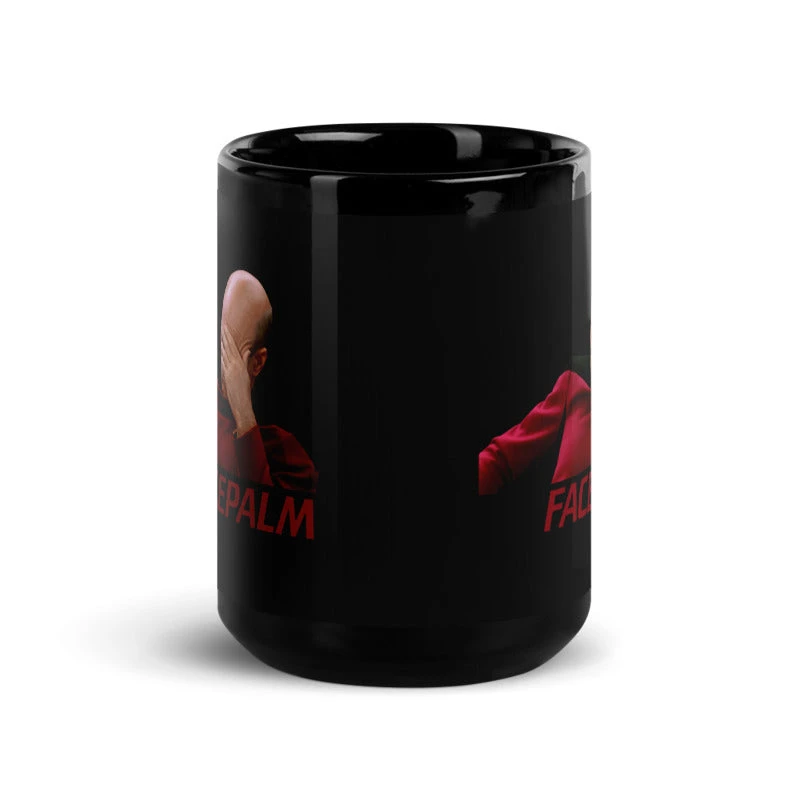 This Star Trek: The Next Generation Facepalm 15 oz Black Mug is the perfect office mug to use when you just want to facepalm. It also makes a hilarious gift to any Star Trek fan.