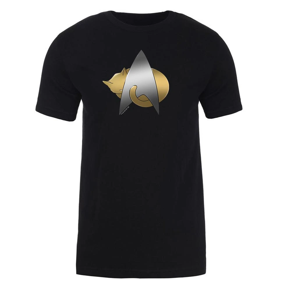 Help the crew of the U.S.S. Enterprise-D convince the god-like alien, Q, of humanity’s worth by showing him an awesome Star Trek: The Next Generation style! Your favorite crew members like Captain Jean-Luc Picard, Riker, Geordi La Forge, Worf, Deanna Troi, and Data are always there to make you laugh, cry, or feel excited about exploring the unknown with this official Star Trek: The Next Generation Kitty Cat Logo Graphic T-Shirt. Make it so!