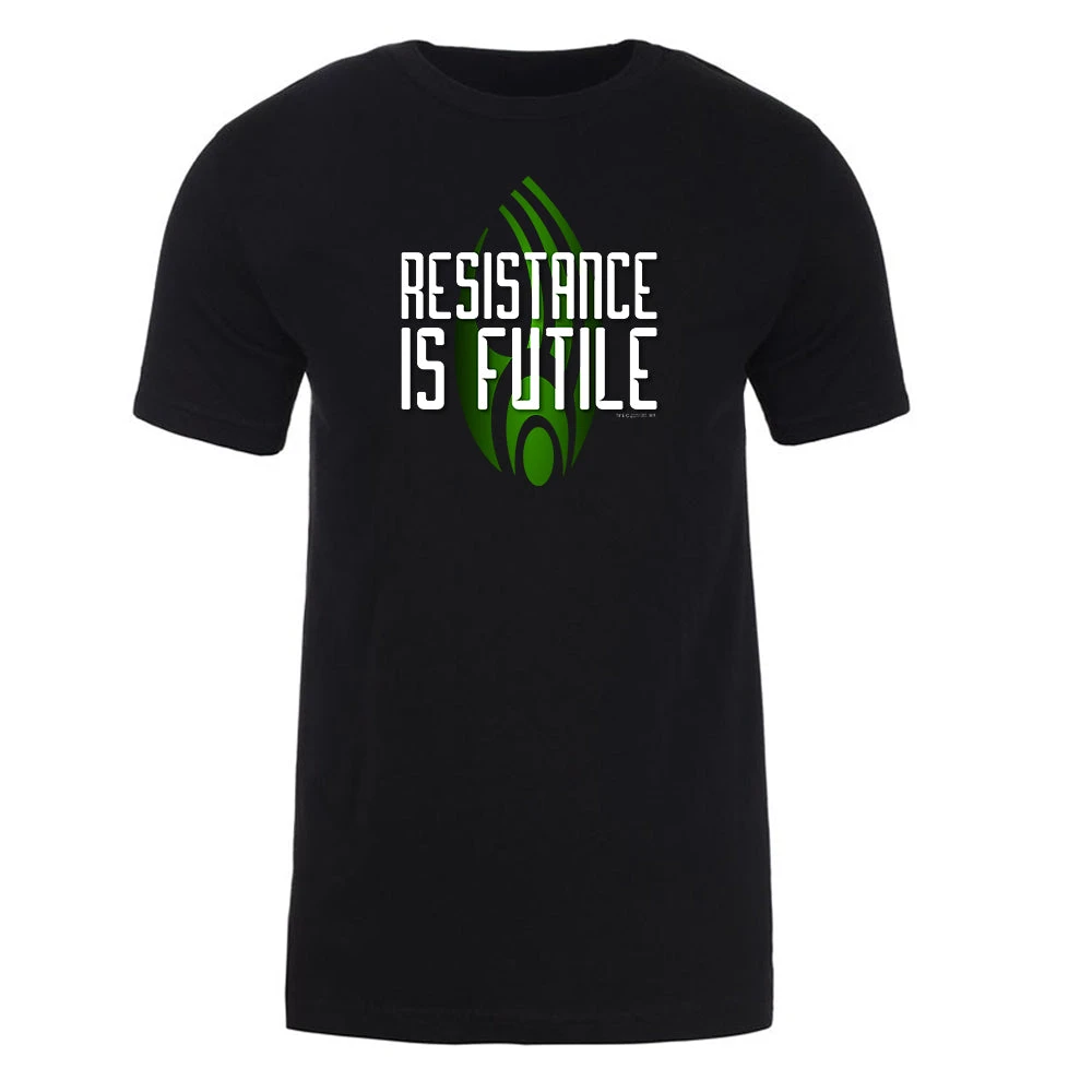 Featuring a glowing green Borg insignium behind the classic phrase, this Star Trek: The Next Generation Resistance is Futile Short Sleeve T-Shirt is perfect for Star Trek fans that can’t get enough Borgs in their episodes. Comfortable and mysterious, this tee pairs well with any style.