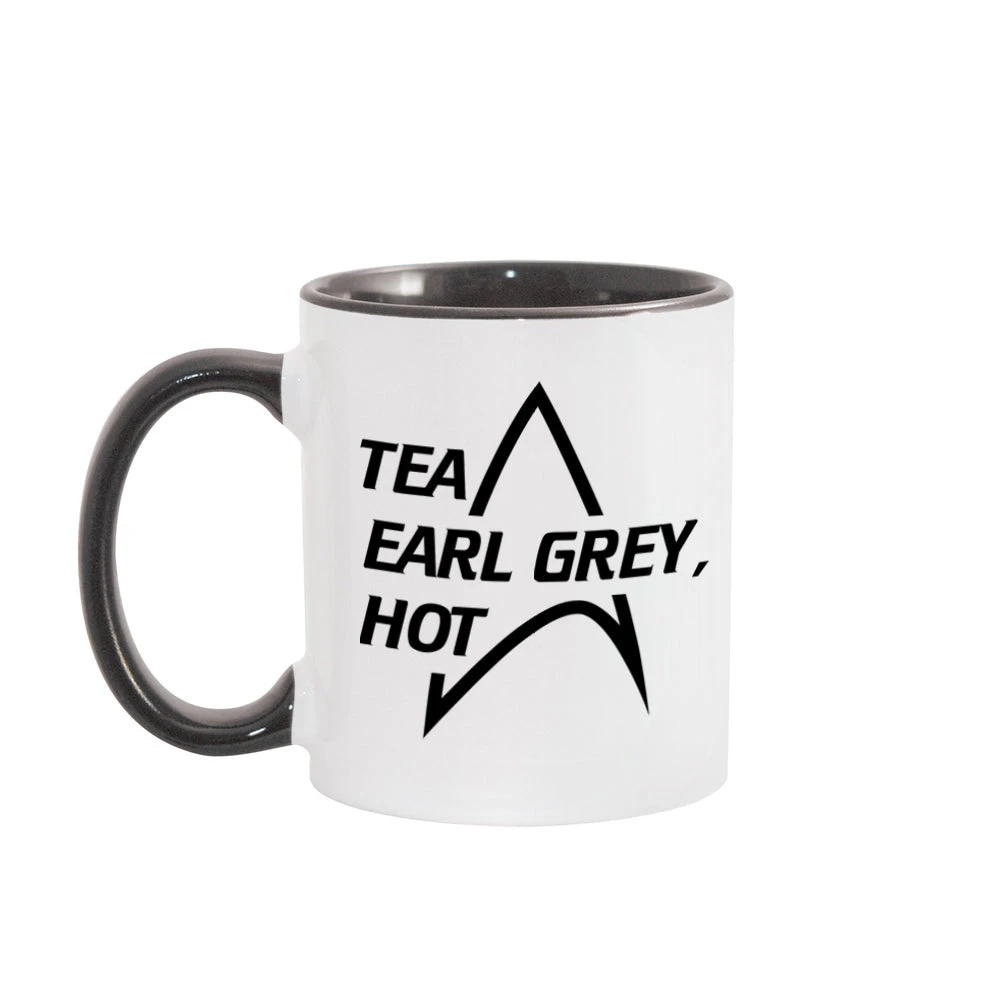 Feel like Captain Picard while sipping a delicious cup of Earl Grey tea, hot of course, in this Star Trek: The Next Generation Tea Earl Grey Hot 11 oz Two-Tone Mug.