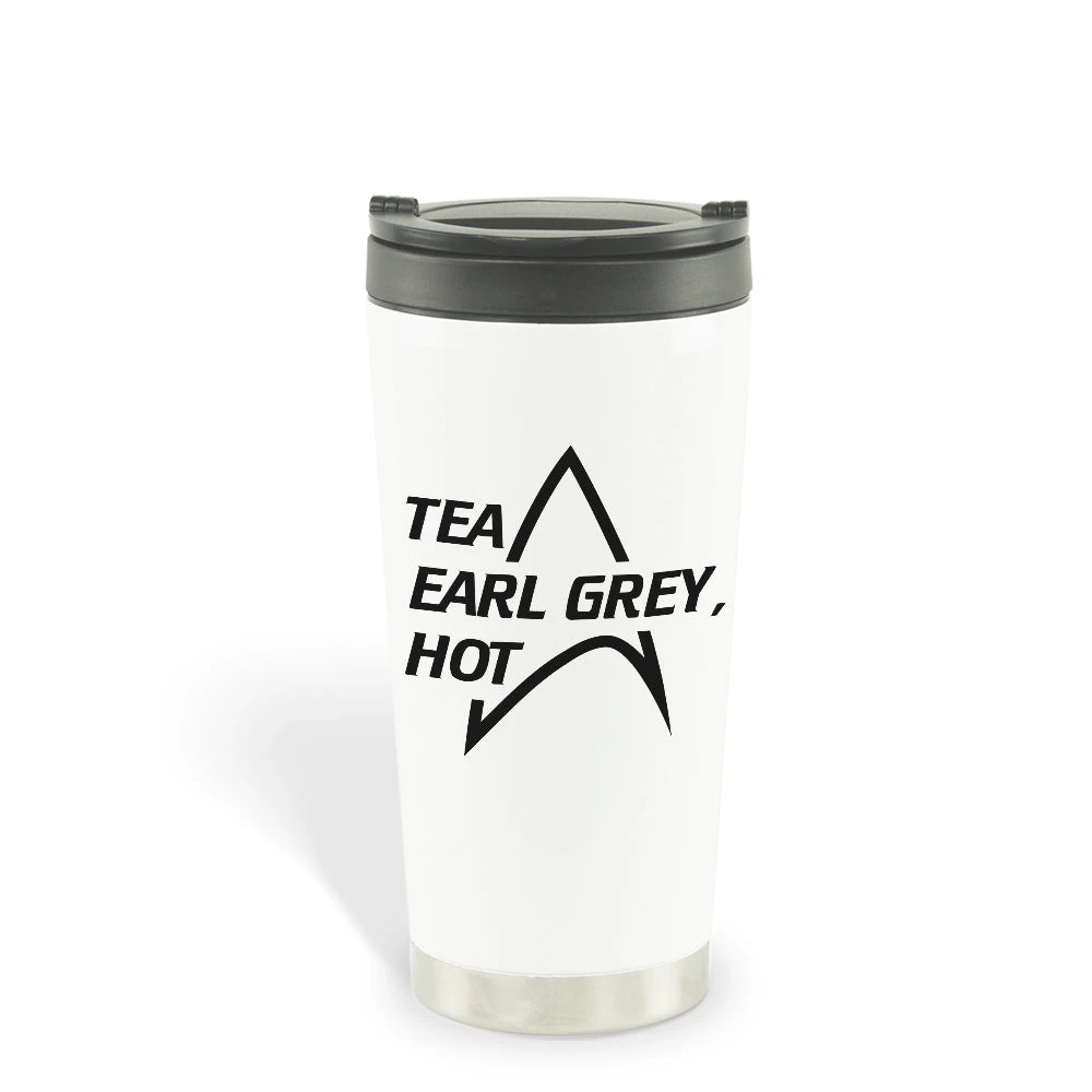 A perfect blend of Star Trek and Earl Grey, this Star Trek: The Next Generation Tea Earl Grey Hot Travel Mug is a perfect addition to the cupboards of Star Trek and Earl Grey tea enthusiasts everywhere.