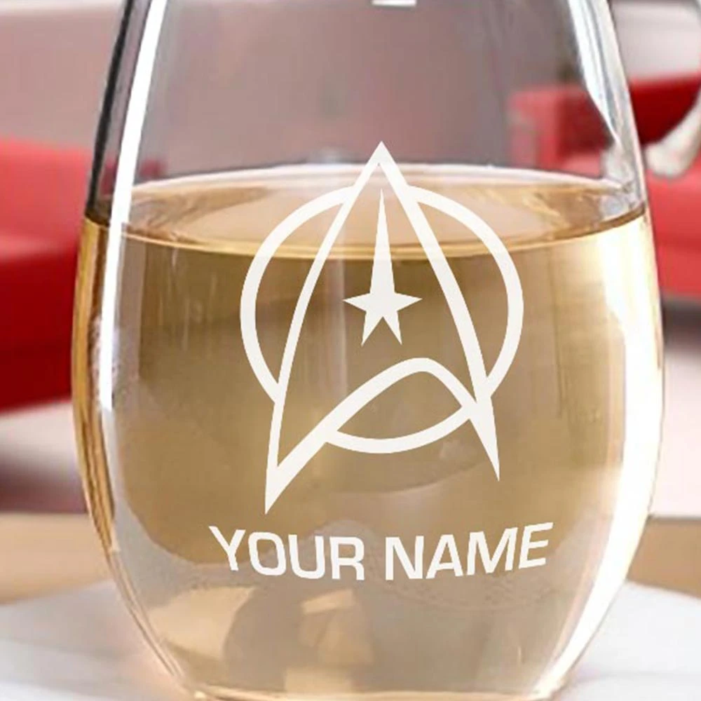 Enjoy a delicious, vintage bottle of Chateau Picard when sailing through space on the U.S.S. Enterprise in this Star Trek: The Original Series Delta Personalized Laser Engraved Stemless Wineglass. The personalized touch on the glass will let everyone know who it belongs to.