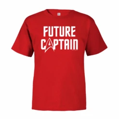 This Star Trek: The Original Series Future Captain Toddler Short Sleeve T-Shirt lets everyone know that your little Star Trek fan is well on their way to becoming a starship captain. Comfortable and classic, this tee will become your little one’s favorite shirt.