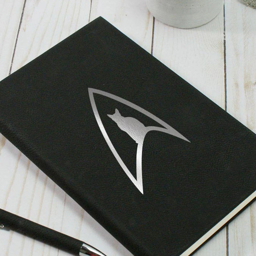Keep your school notes, work schedule, and daily thoughts in one place while representing the Star Trek universe with this Star Trek: The Original Series Kitty Cat Logo Laser Engraved Notebook. Or, gift it to the busy Star Trek fan in your life to make their day.