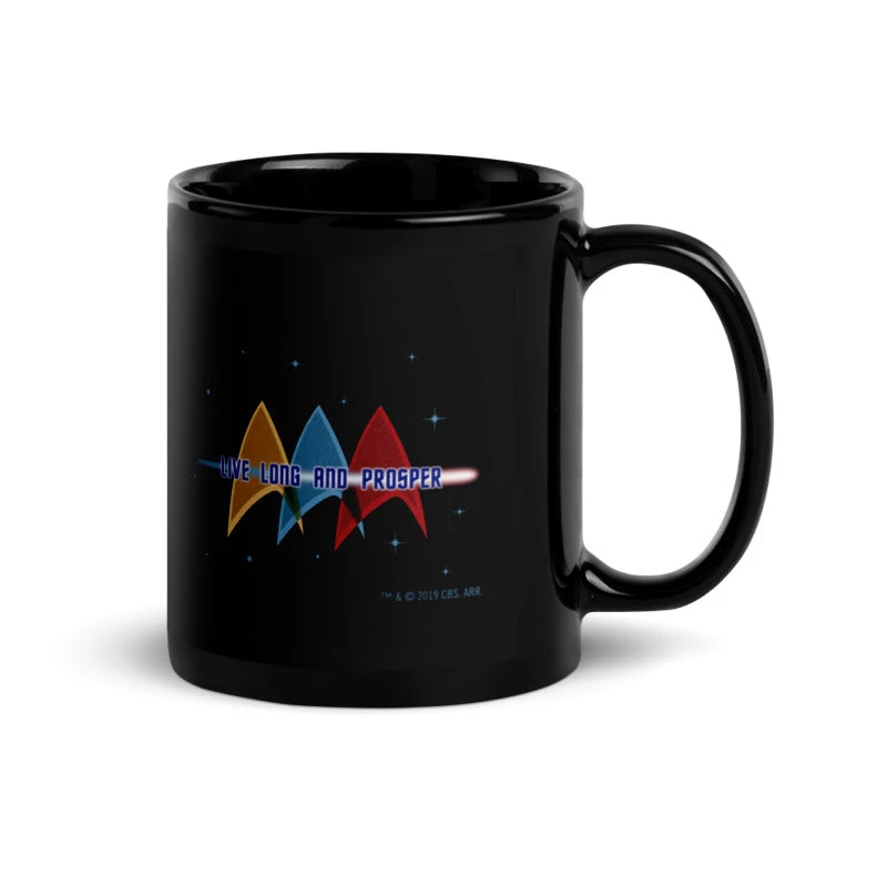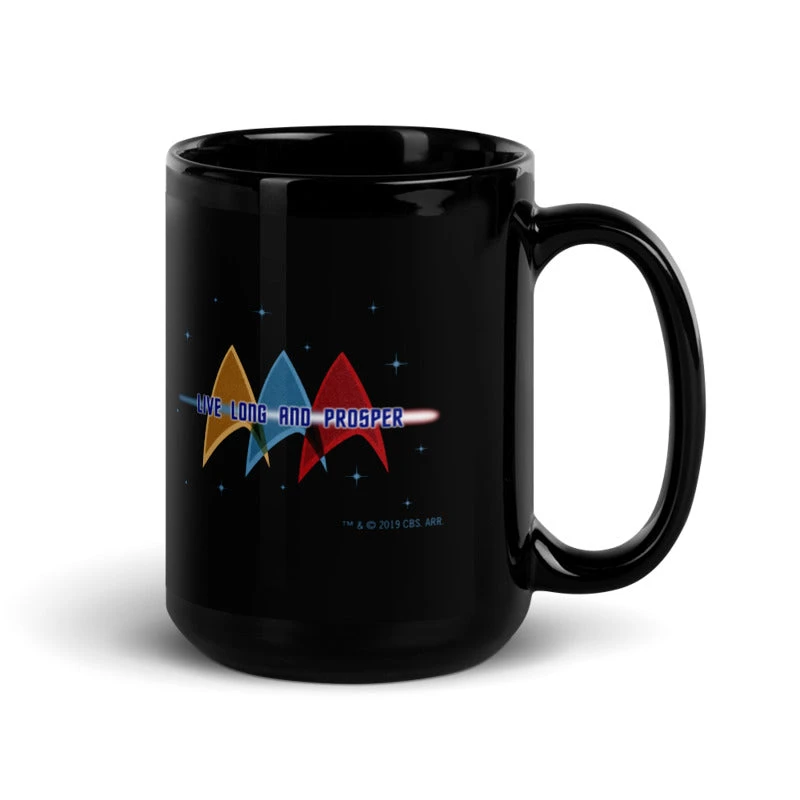 From your morning coffee to your evening tea, this Star Trek: The Original Series Live Long and Prosper Deltas Black Mug will always remind you of this positive Vulcan greeting. This mug is also a great gift for a fellow fan!