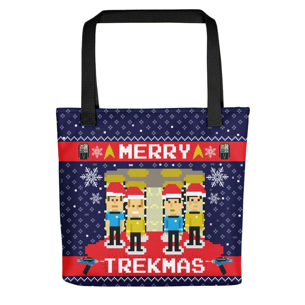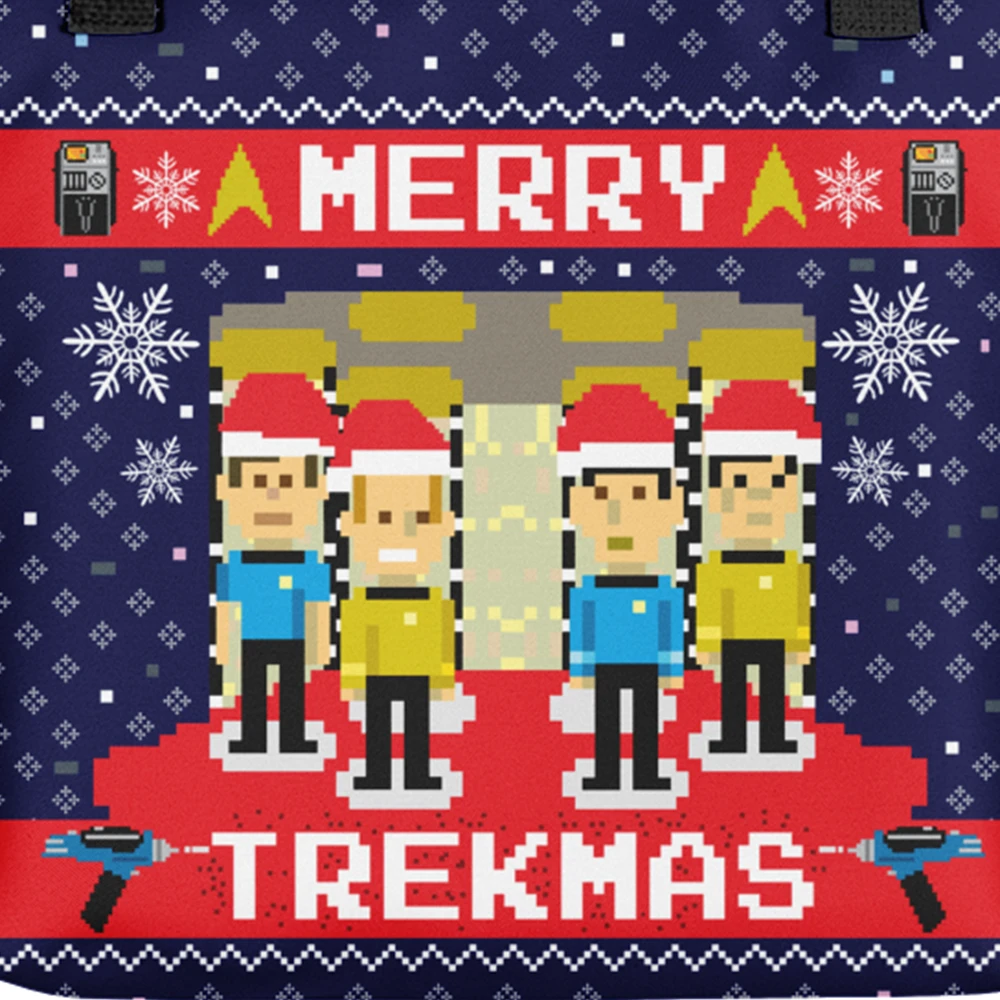 Get into the Trekmas spirit by adding this Star Trek: The Original Series Merry Trekmas Tote Bag to your holiday wardrobe. With a spacious design perfect for stowing presents, this tote bag is sure to spread holiday cheer each time you wear it.