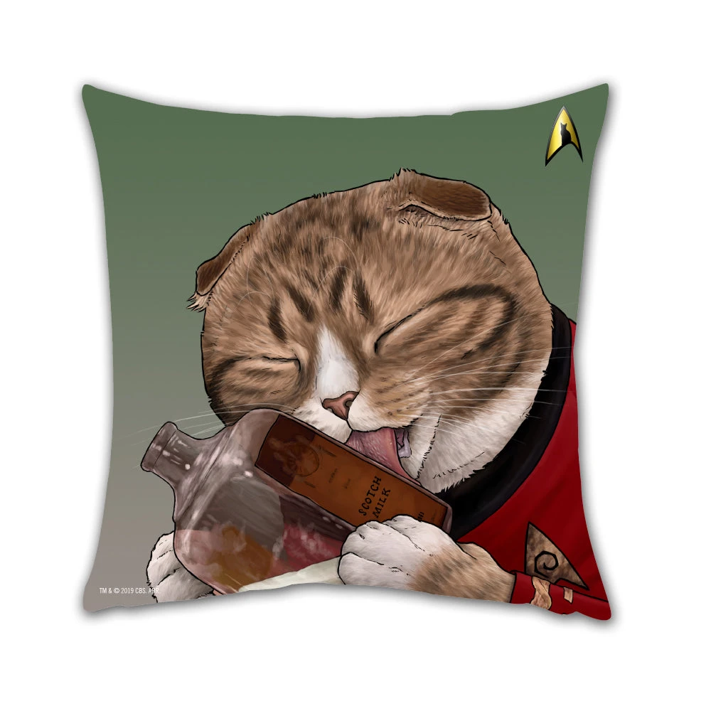 Are you looking for the purrr-fect home decor addition? This Star Trek: The Original Series Milk Cat Pillow is the comfiest pillow in the Milky Way! Featuring your favorite feline chief engineer cuddling a glass of milk, this pillow is even better than a very, very, very old bottle of scotch.