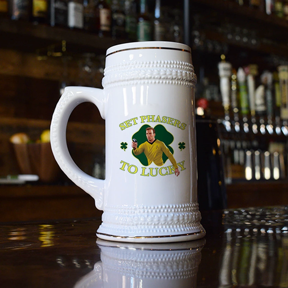 Are you ready to have a shamrockin’ good time this St. Patrick’s day? Then you will love adding this Star Trek: The Original Series Set Phasers to Lucky Beer Stein to your festivities! Perfect for fans of The Original Series, this iconic beer stein brings the luck o’ the captain with you everywhere you go.
