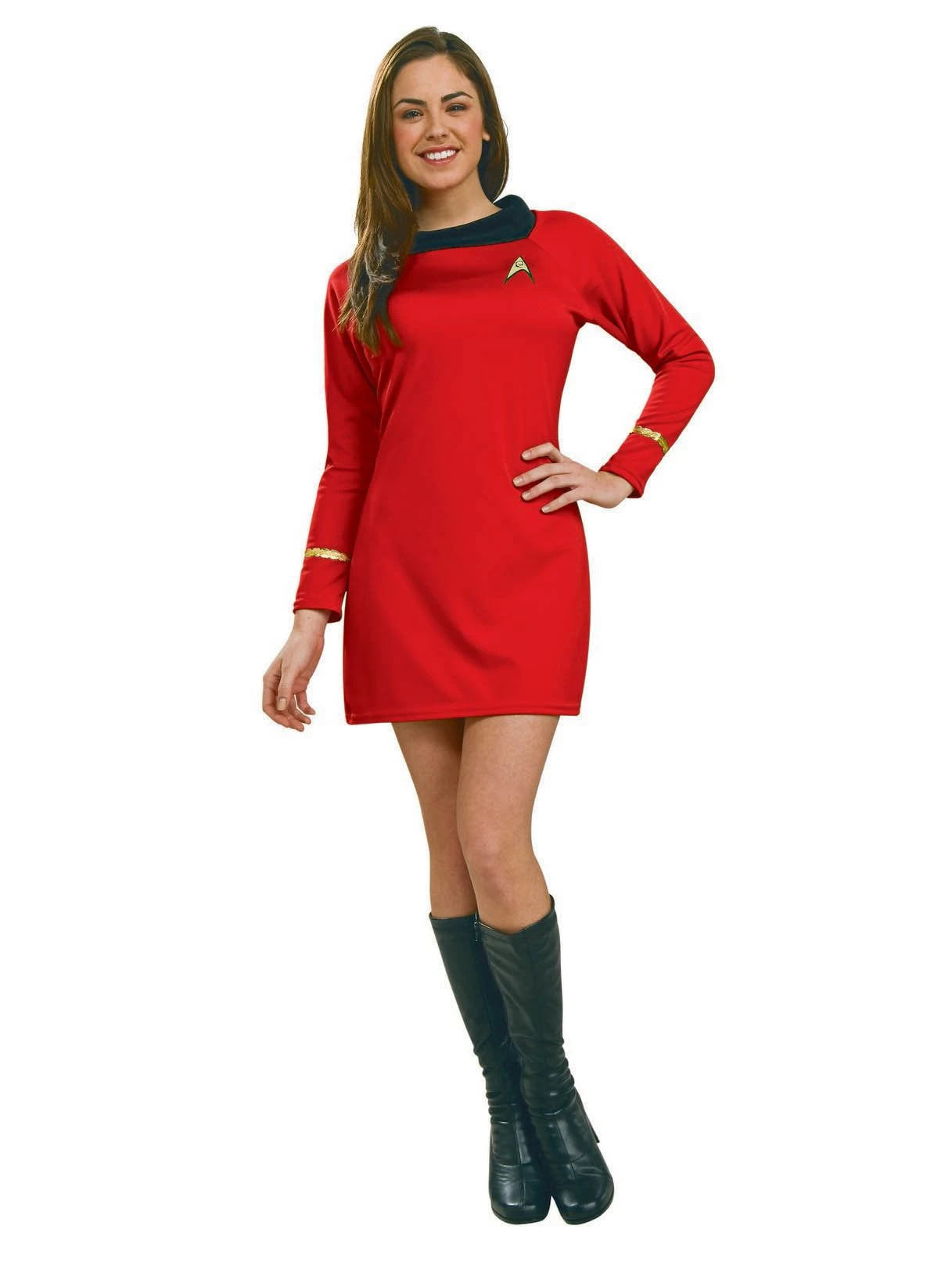 If your dream has always been to be the commander of an exploration vessel, now’s your time to wake up and assume your responsibilities. The Star Trek: The Original Series Women’s Deluxe Uhura Uniform is an outfit that will get far more wear than your normal clothes. This style features a simple red dress with a thigh length skirt and a Starfleet pin affixed to the chest. You are a member of a future earth where all the citizens have come together under a single banner. Humanity is now a species that advises peace and prosperity among all the species of the universe. You will attend many conventions and have a ton of fun meeting up with friends and acquaintances to talk everything Star Trek.Â