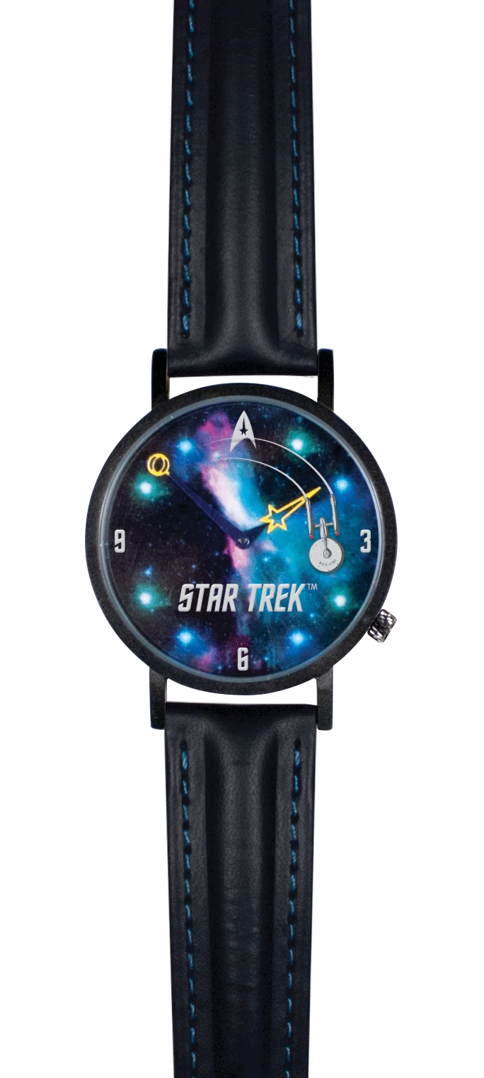 The official Star Trek U.S.S. Enterprise Watch features the Command symbol on the hour hand, the Science symbol on the minute hand, and a Starfleet Command badge in the 12 o’clock position. This collectible is every true Star Trek fan’s daily reminder to “Live Long and Prosper”. This watch not only tells the time in Earth hours, but the second hand is an image of the U.S.S. Enterprise (NCC-1701) cruising through space. Even if you were the crew aboard the U.S.S. Enterprise with the latest and great tech, you would want to ditch the notifications and gadgets and enjoy the stars in peace!