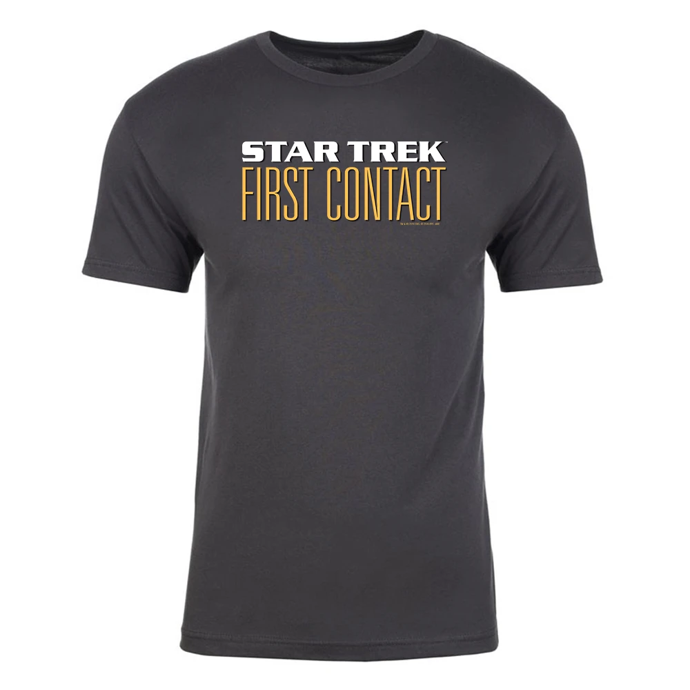With a two-toned design, this Star Trek: First Contact Logo Adult Short Sleeve Shirt was made for fans who love standing out. Take this classic movie with you everywhere you go by wearing this tee throughout the universe.