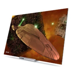 Featuring the advanced armor technology used by Starfleet, this Star Trek: Voyager Ships of the Line Armored Voyager wall art represents one of the sturdiest and most iconic starships in the galaxy. Beautifully designed, this acrylic looks great anywhere you hang it.