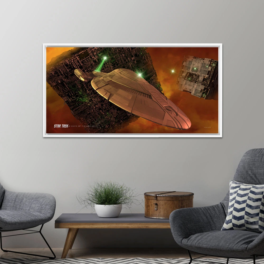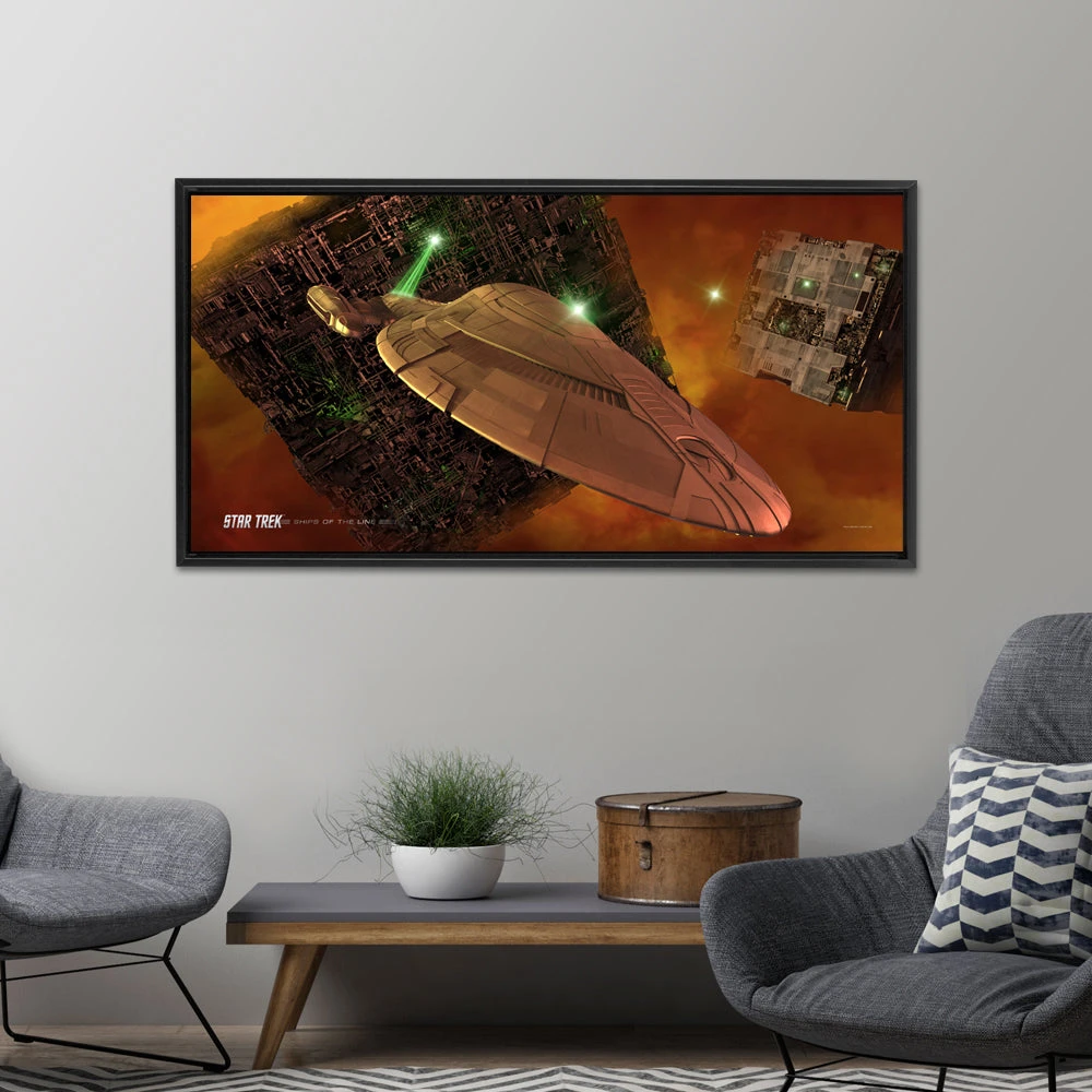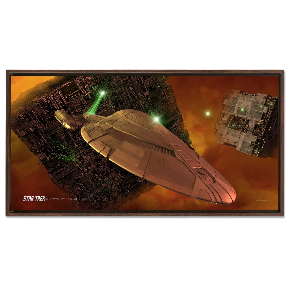 Featuring the advanced armor technology used by Starfleet, this Star Trek: Voyager Ships of the Line Armored Voyager wall art represents one of the sturdiest and most iconic starships in the galaxy. Beautifully designed, this floating frame gallery wrapped canvas looks great anywhere you hang it.